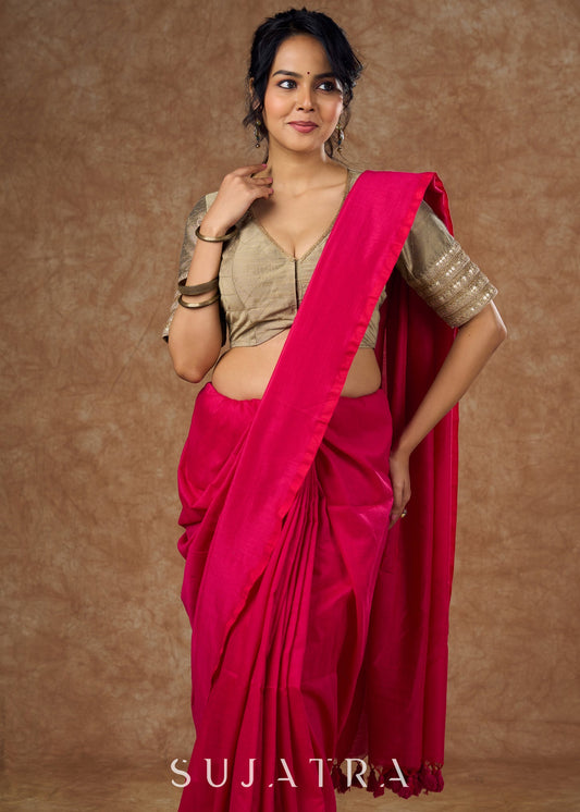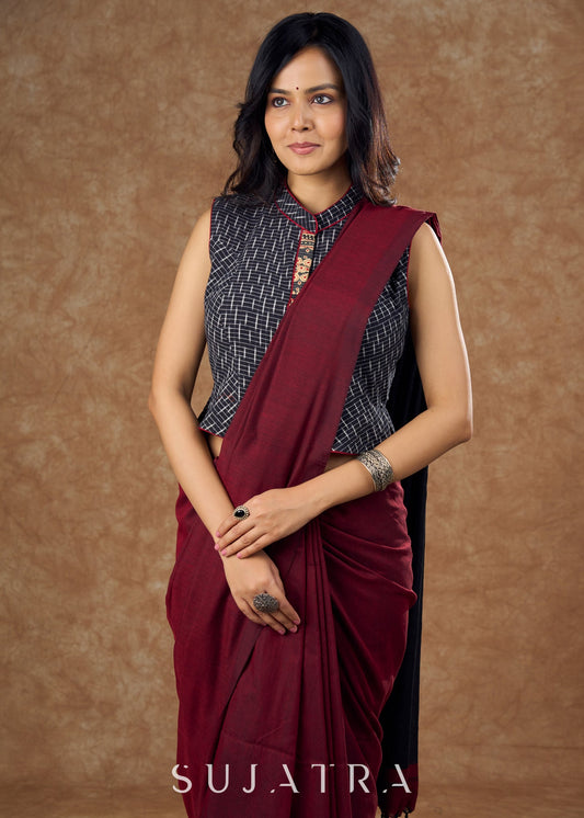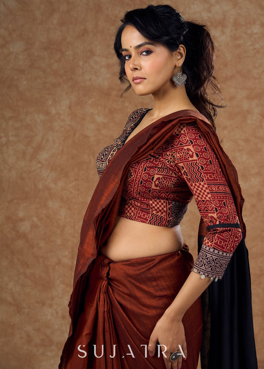 maroon cotton and traditional Ajrakh print in this top style blouse - Optional Saree