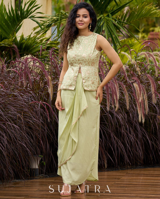Brocade Blouse & Pleated Brocade Pants with Additional Brown Sheer Tunic