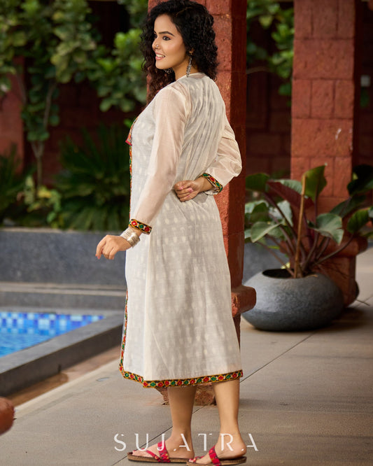 Minimalist Grey Ikat Sleeveless Dress - Mirror Work Jacket Additional