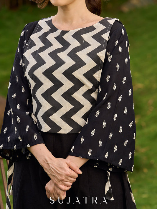 Contemporary Black Panel Kurta featuring Zigzag Tie Panel and Intricate Embroidered Sleeves