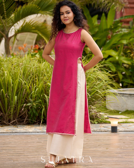“Stylish cotton sleeveless kurta with pant n jacket optional