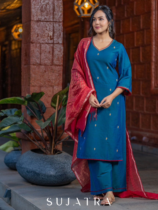Neelkamal Intricate Hand Embroidered Chanderi Kurta