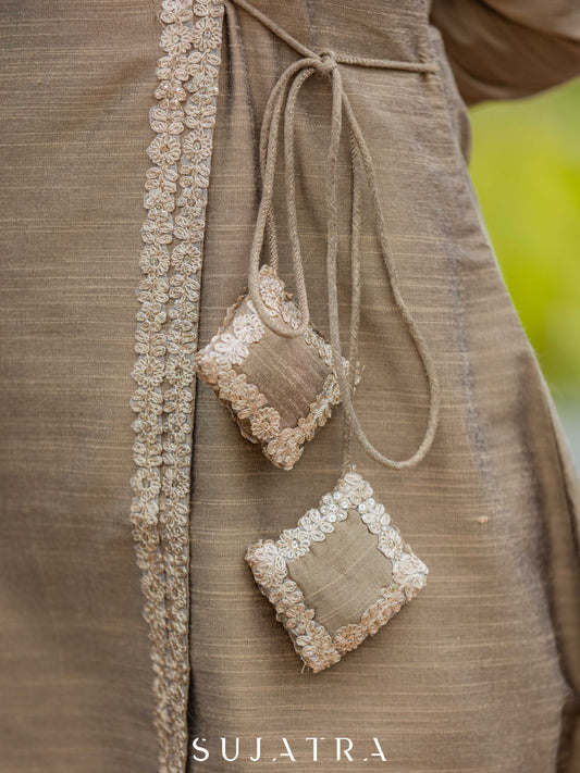 Noorani Cotton Silk Angarkha Kurta with Exquisite Tassle Detailing