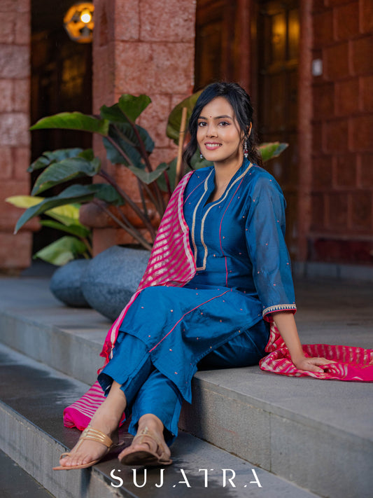 Noor - e - Neel Delicate Hand Embroidered Cotton Silk Kurta