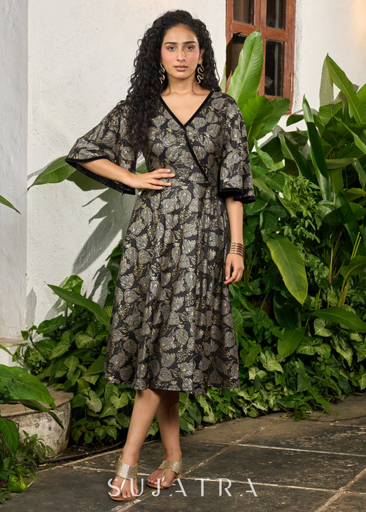 Elegant black foil print dress with lace detailing