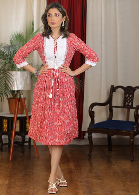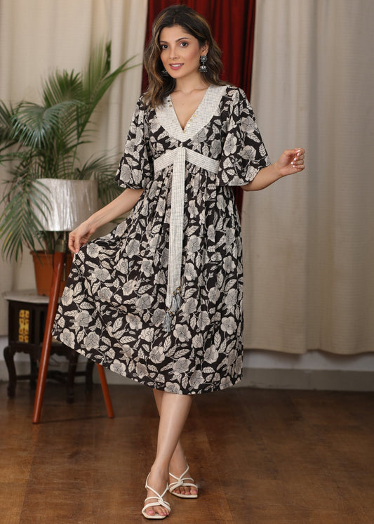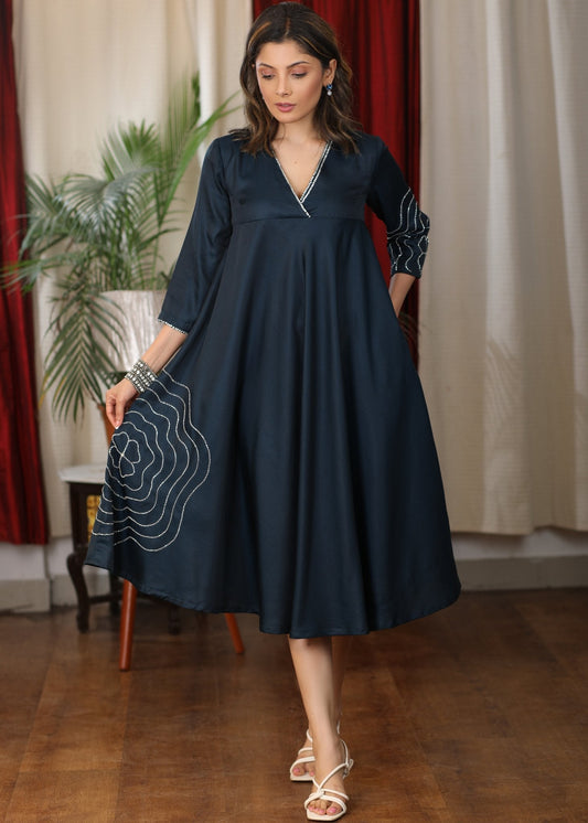 Beautiful Cotton Empire Line Indigo Combination Dress