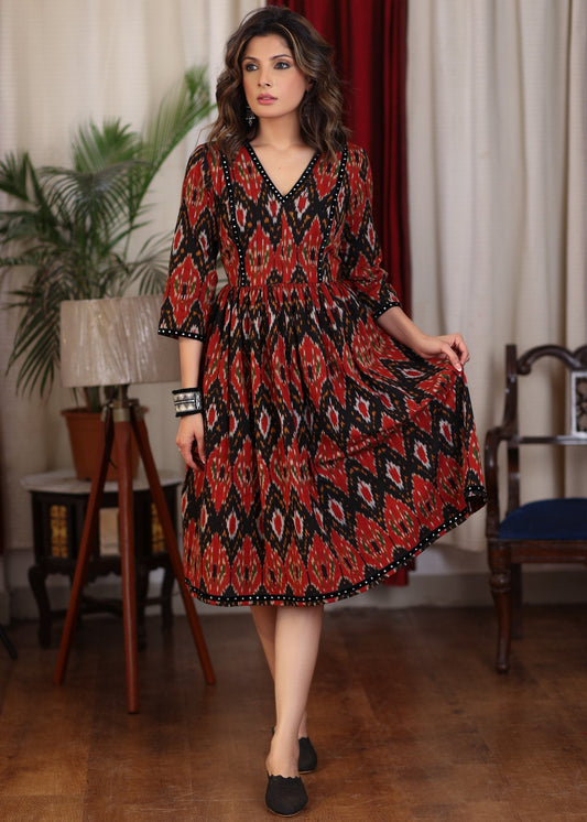 Exclusive maroon and black ajrakh combination dress with mirror embroidery