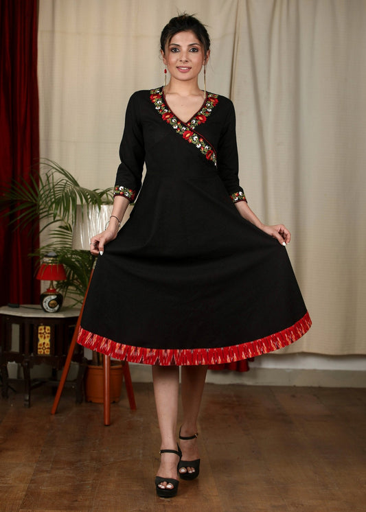 Exclusive black cotton gown with hand embroidered kutch mirror work yoke