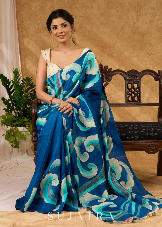 Vibrant Blue Pure Silk Hand Batik Saree