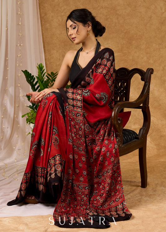 Block printed Ajrakh handloom cotton saree