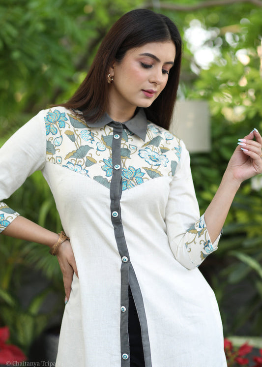 Exclusive off White Printed with Grey Combination Shirt Tunic.
