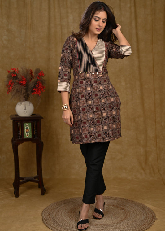Maroon & black Ajrakh combination cotton tunic