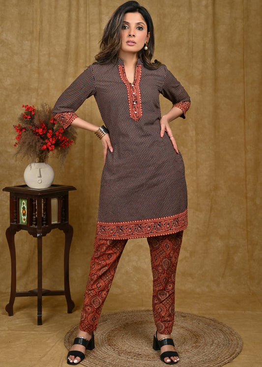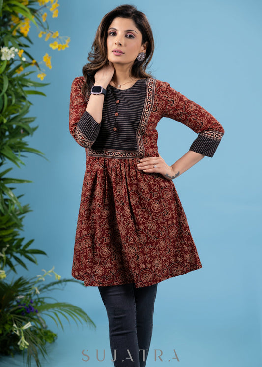Ajrakh combination maroon and black cotton tunic