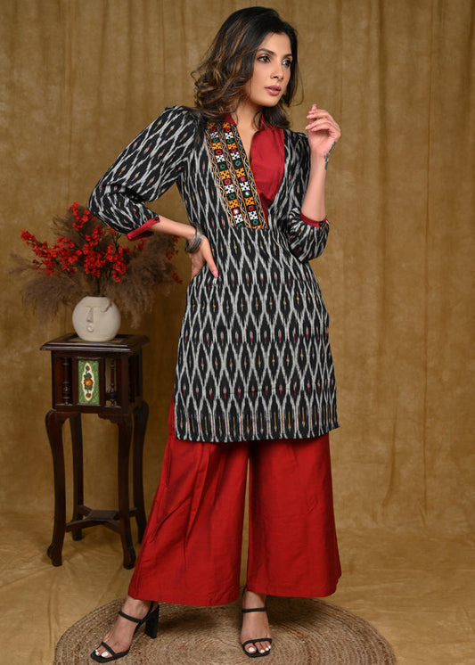 Graceful Ikat Tunic with Handmade kutch mirror Work