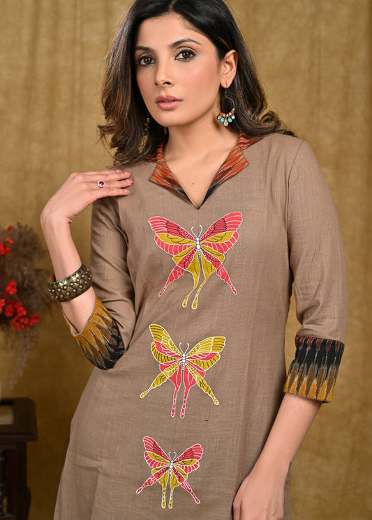 Exclusive Cotton Ikt Combination Tunic with Beautiful Butterfly Hand Painting