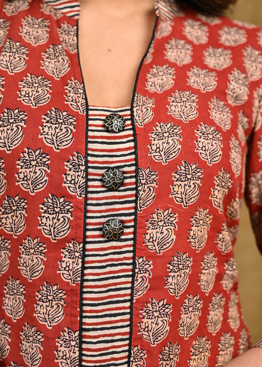 Graceful Cotton Ajrakh Combination Tunic with Wooden Buttons on Yoke