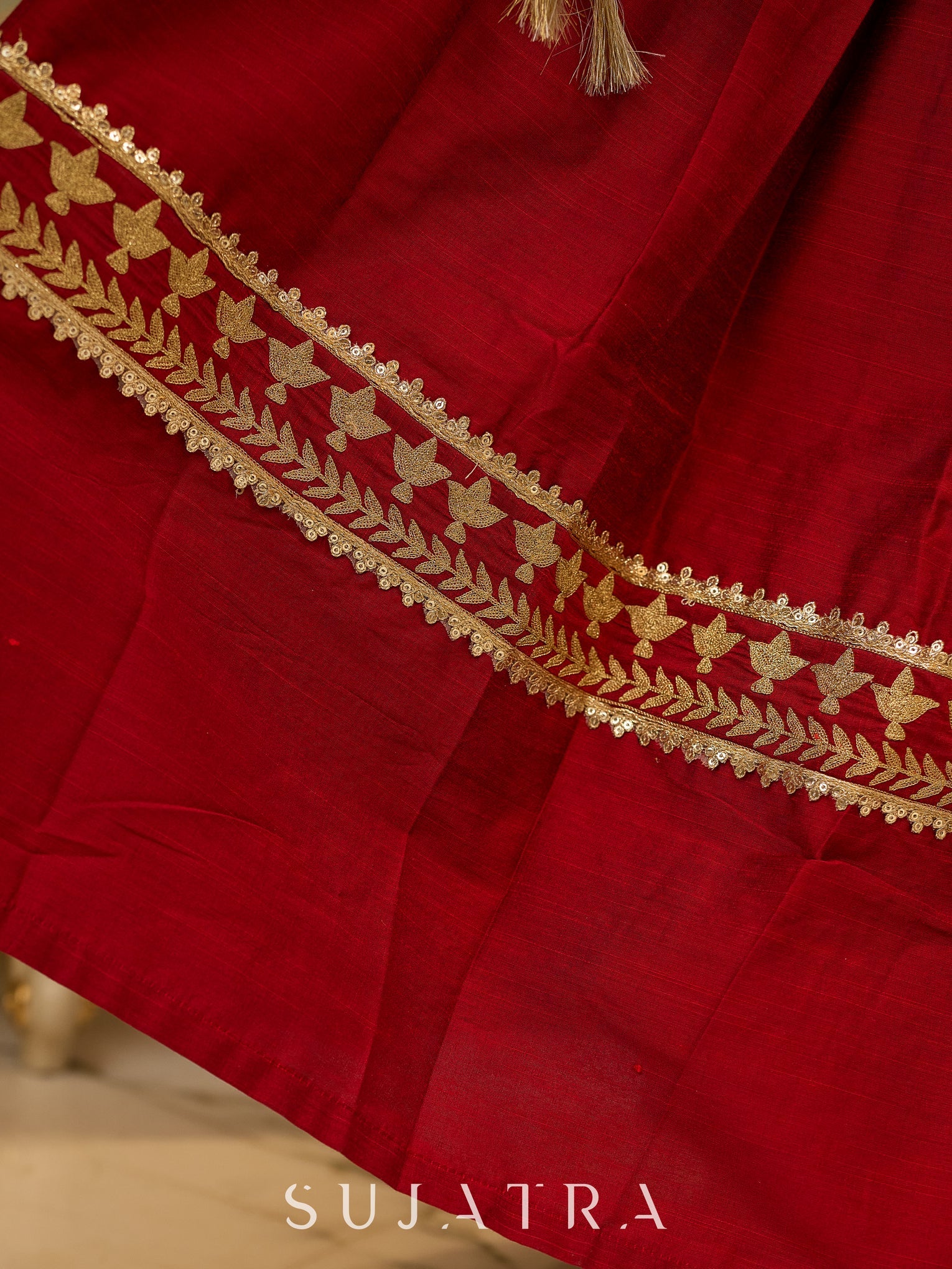 Expertly crafted with Cotton silk, this traditional look features a red lehenga with green choli and brocade yoke, with the option to add a contrasting dupatta. Perfect for special occasions, this outfit exudes elegance and style. Don't compromise on quality or authenticity with this stunning ensemble.