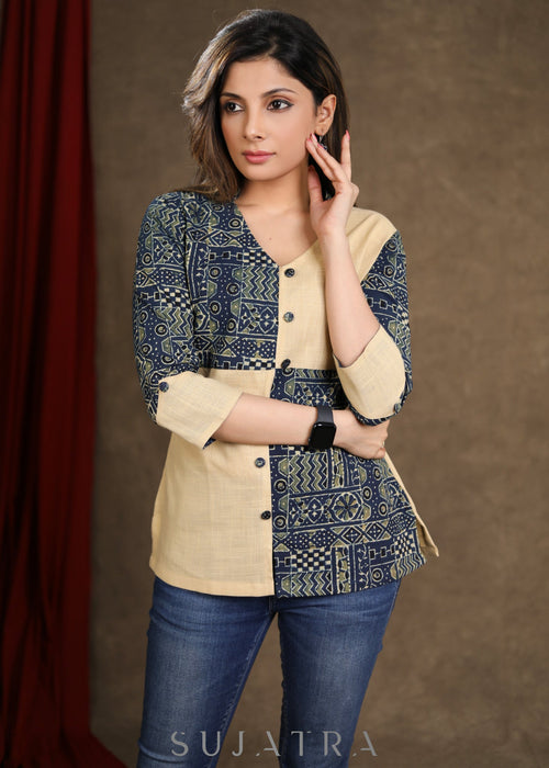 Elevate your wardrobe with our Beautiful Beige Cotton Silk Brocade Combination Blouse. Made from a luxurious blend of cotton and silk, this blouse exudes elegance and comfort. The intricate brocade detailing adds a touch of sophistication, making it perfect for any occasion. Upgrade your style with this stunning piece.