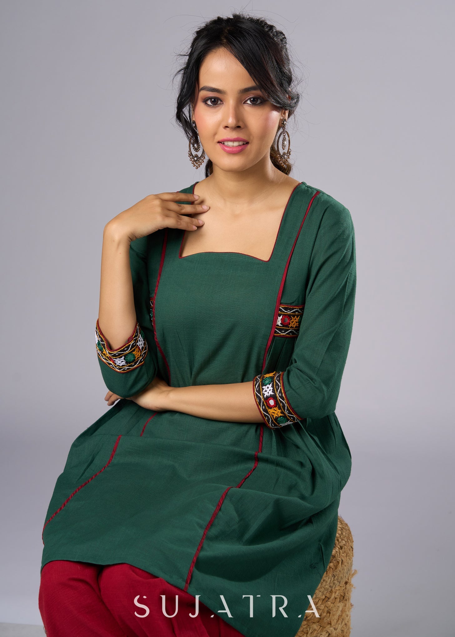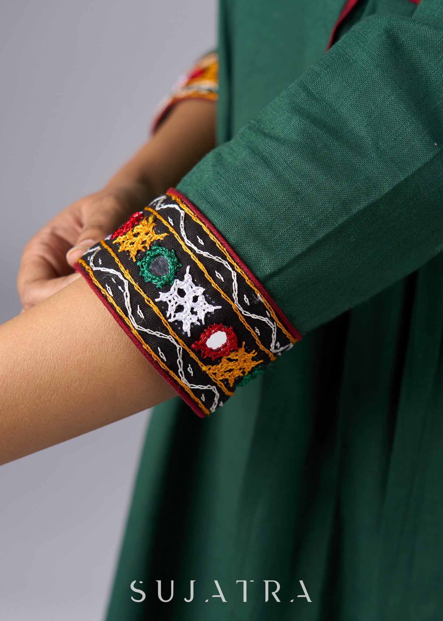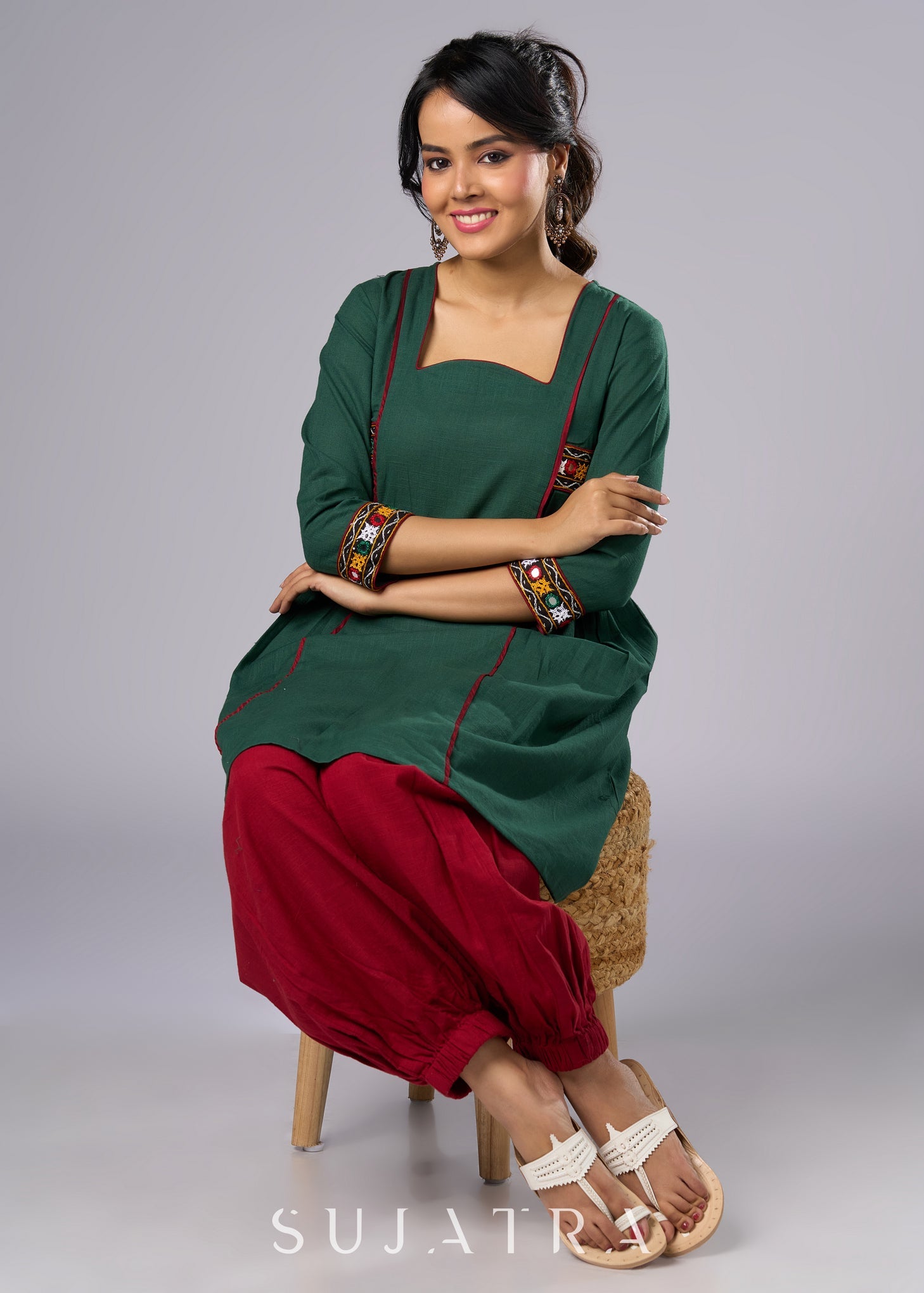 Beautiful Green Cotton Mirror Work Tunic Pant Additional