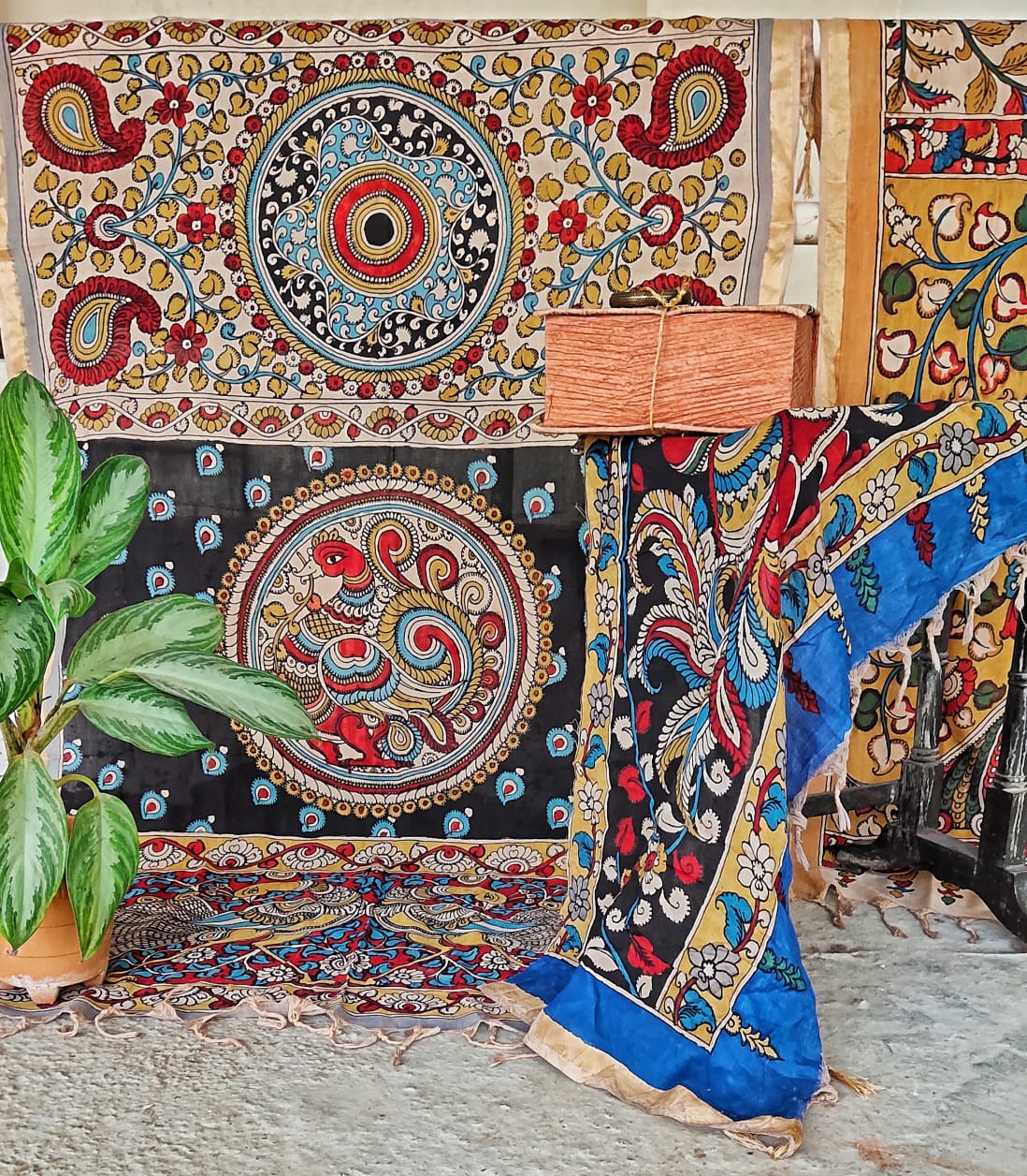 Feel the soft Bhagalpuri silk caress your skin in this gorgeous saree! Combined with a hand painted Kalamkari pallu, this stunning ensemble is sure to turn some heads! Make it yours...so you can "saree you later"!