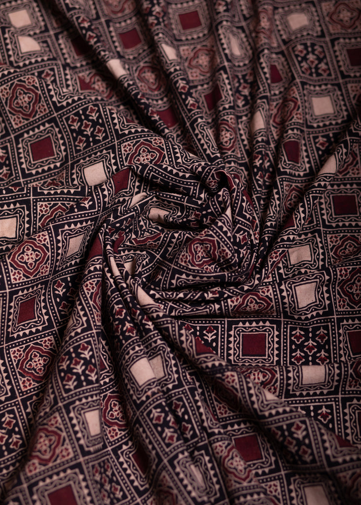 Black Square Shaped Print Cotton Ajrakh Fabric