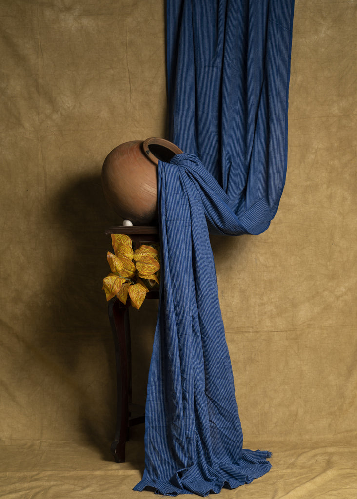 Blue Kantha Work Cotton Fabric