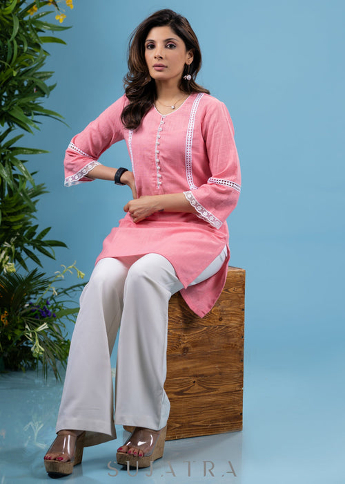Blush pink cotton top featuring a modern asymmetric stripe layout. Crafted from soft, breathable cotton for everyday comfort.