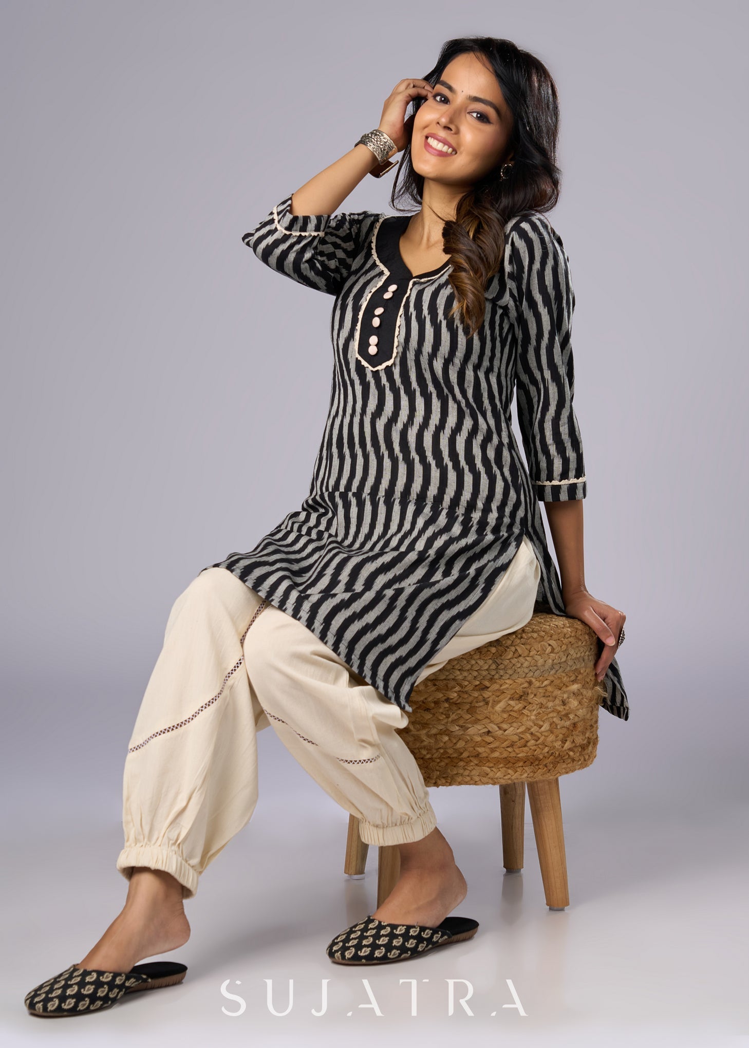 Classic Black Cotton Ikat Tunic - Pant Additional
