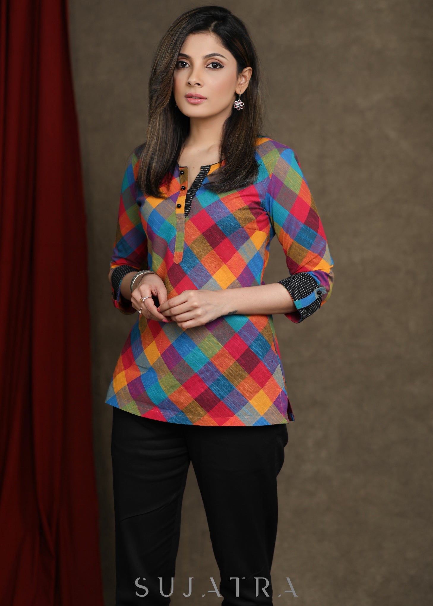 Smart Cotton Checks Multicolour Casual Top