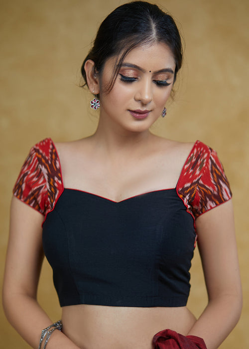 This elegant black blouse, crafted from a luxurious cotton silk blend, features intricate floral embroidery that adds a refined touch to its classic design. The breathable fabric ensures comfort while maintaining a polished appearance, making it ideal for both formal occasions and sophisticated everyday wear. Its expert tailoring highlights a flattering silhouette, combining tradition with contemporary style effortlessly.
