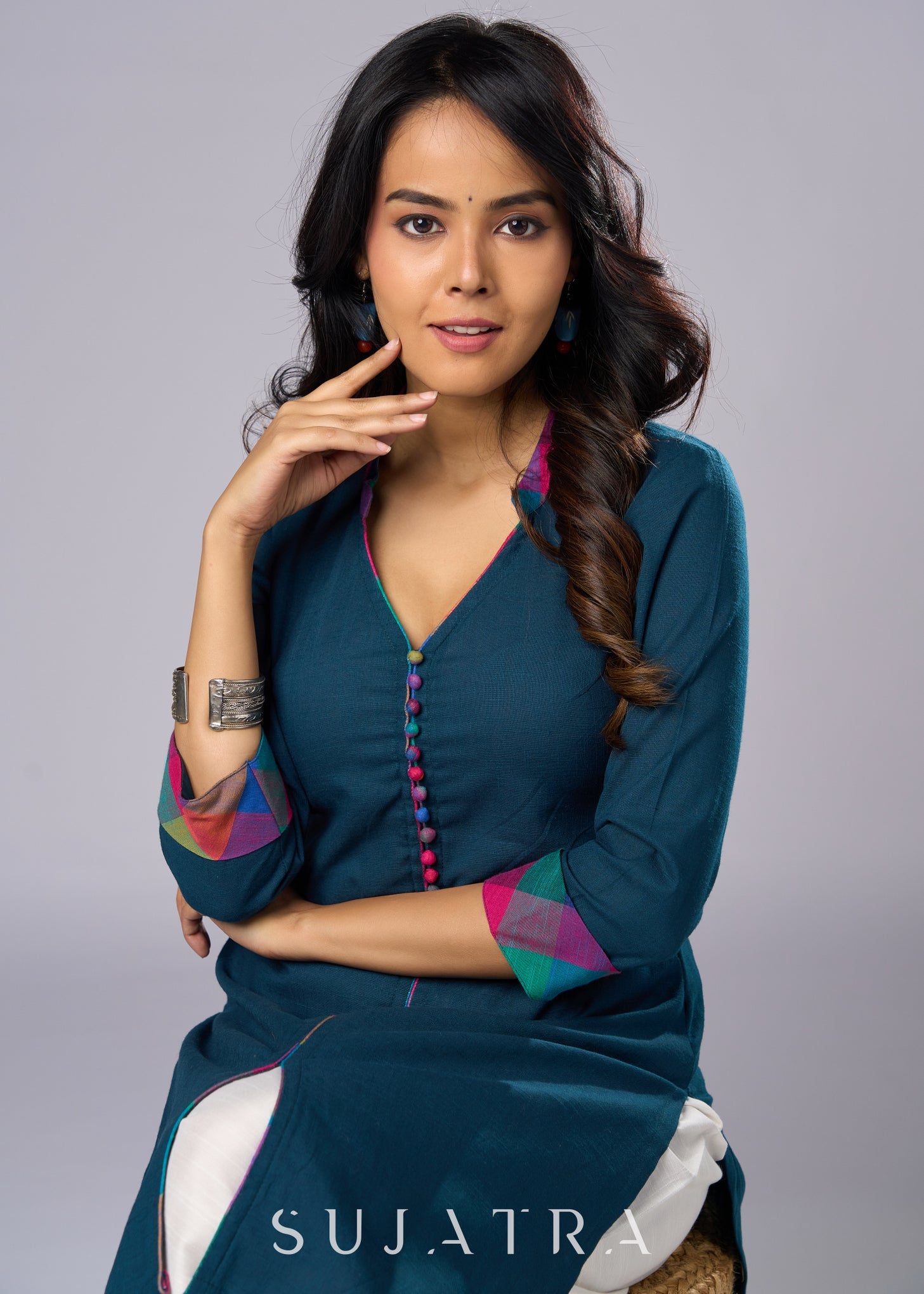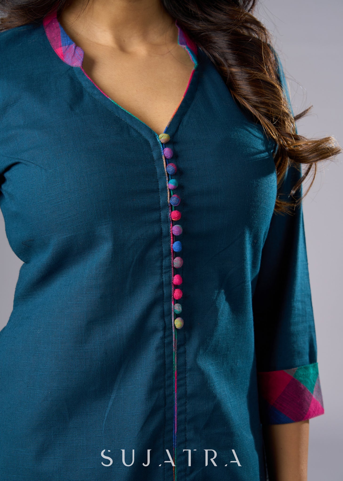 Elegant Casual Teal Cotton Tunic Pant Additional