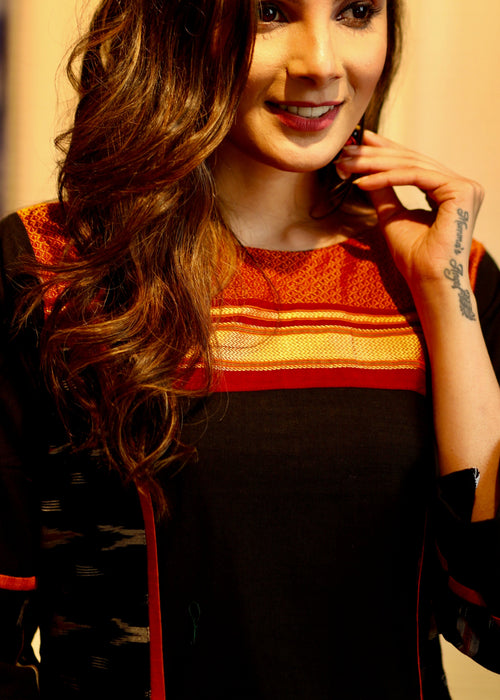 Look stylishly sharp with this Elegant Ikat Combination Blouse with Beautiful Fisheye Back! Boasting a fashionable fisheye back and eye-catching ikat combination, it's the perfect garment for when you want to make a statement—and look fabulous doing it. It'll make you look like you stepped off the runway in no time!