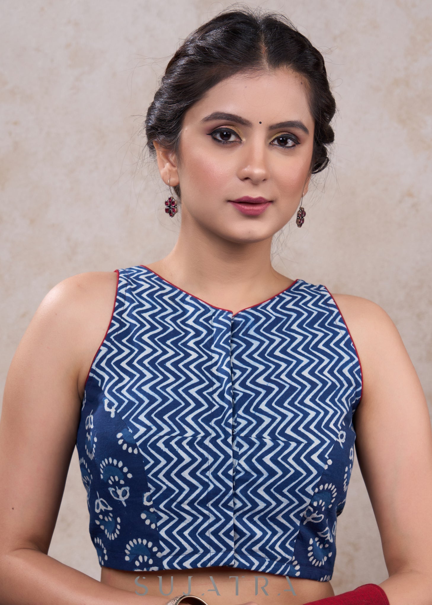 This elegant indigo combination blouse showcases a refined blend of rich hues and sophisticated design, perfect for enhancing your wardrobe with timeless style. Crafted to offer both comfort and a flattering fit, it pairs seamlessly with a variety of outfits, making it an essential piece for those who appreciate expert tailoring and classic elegance.