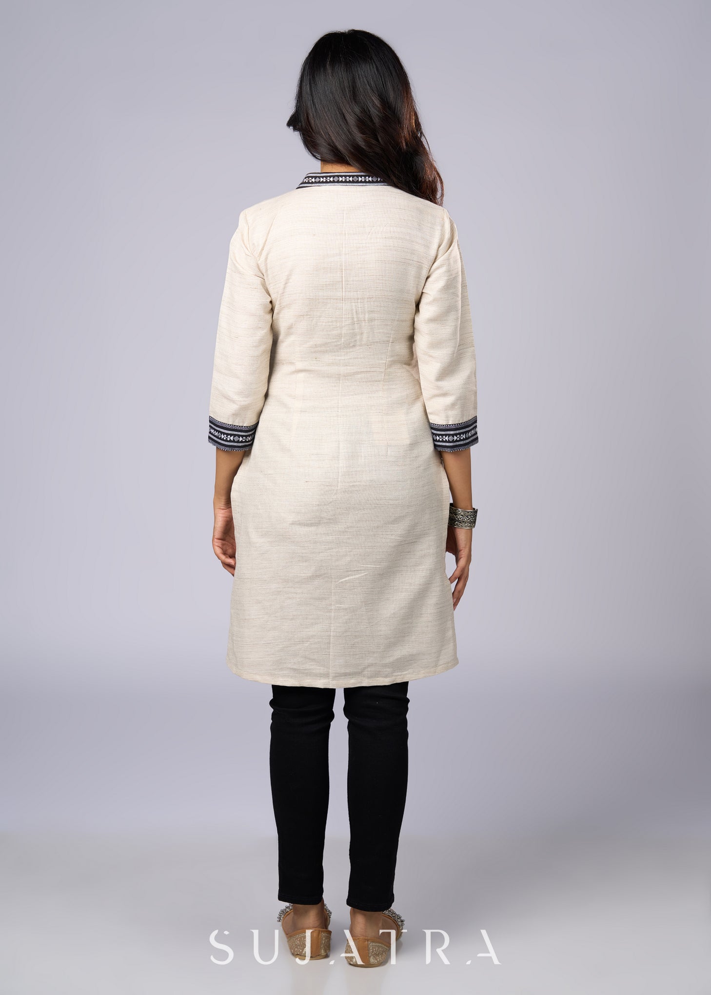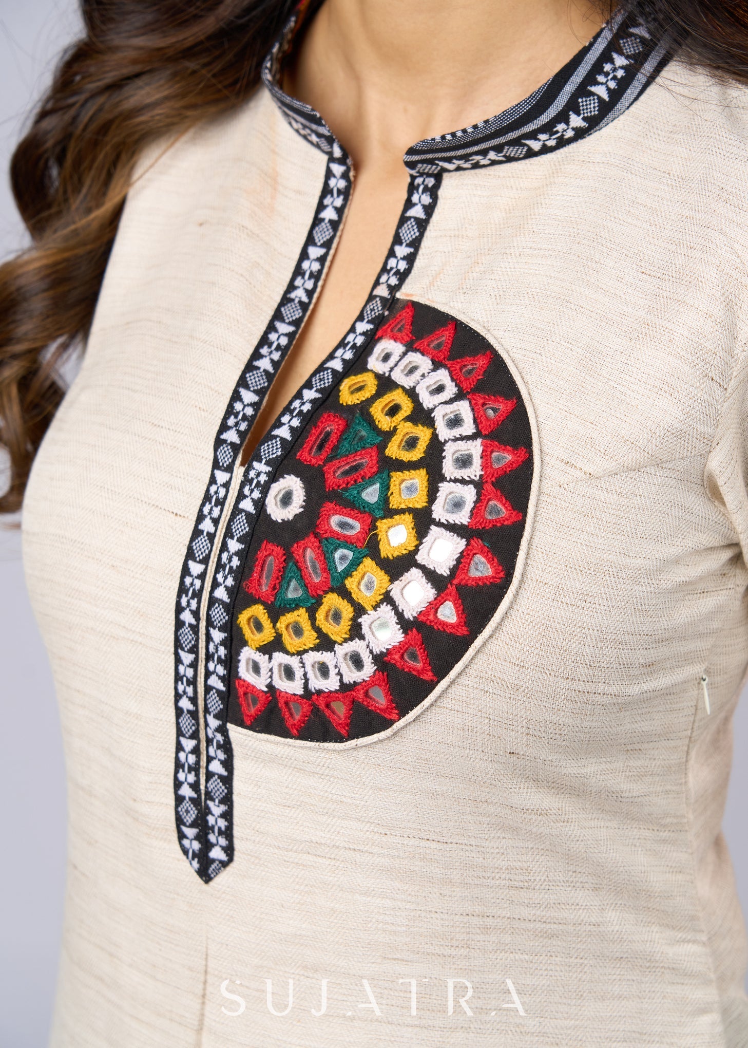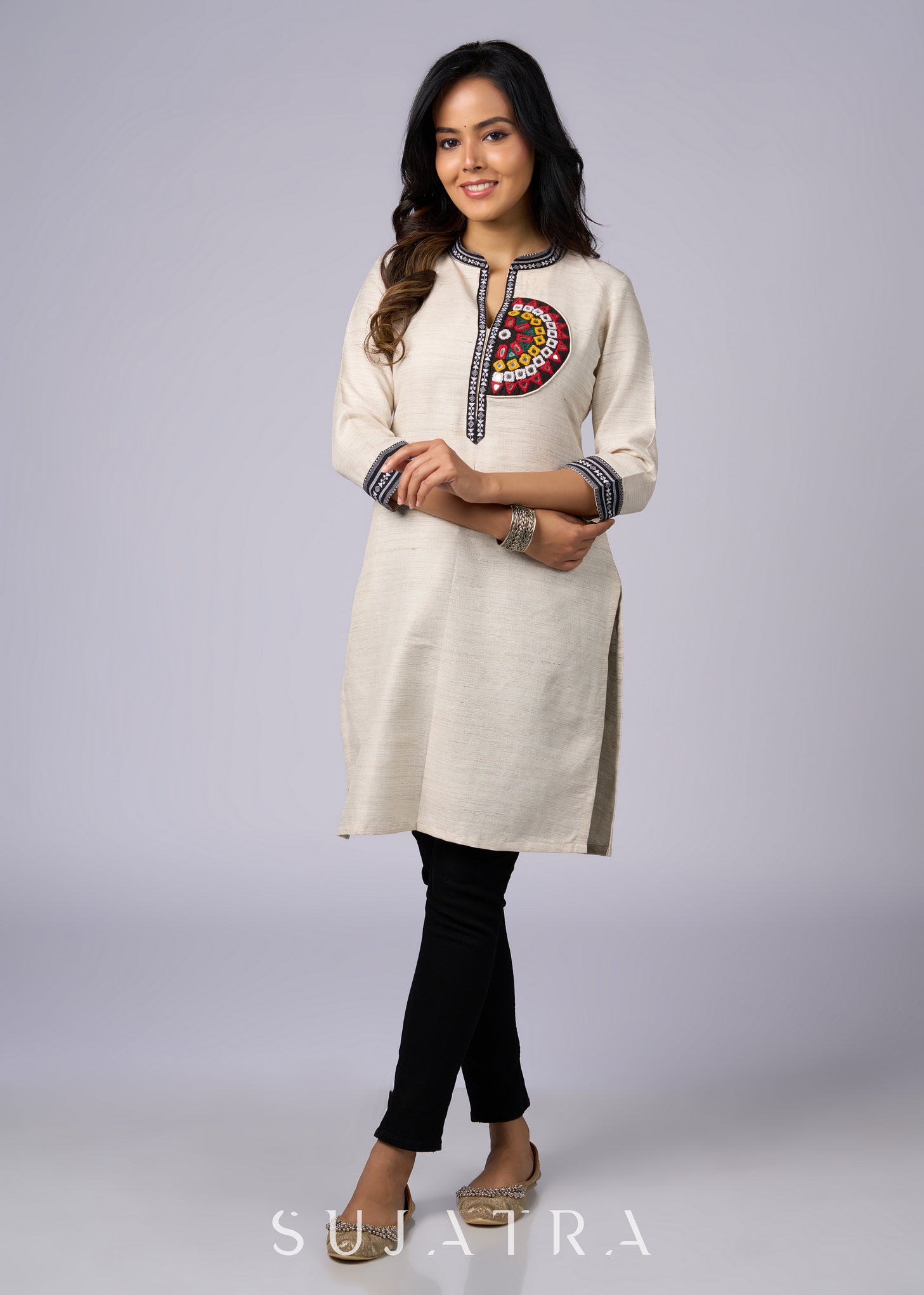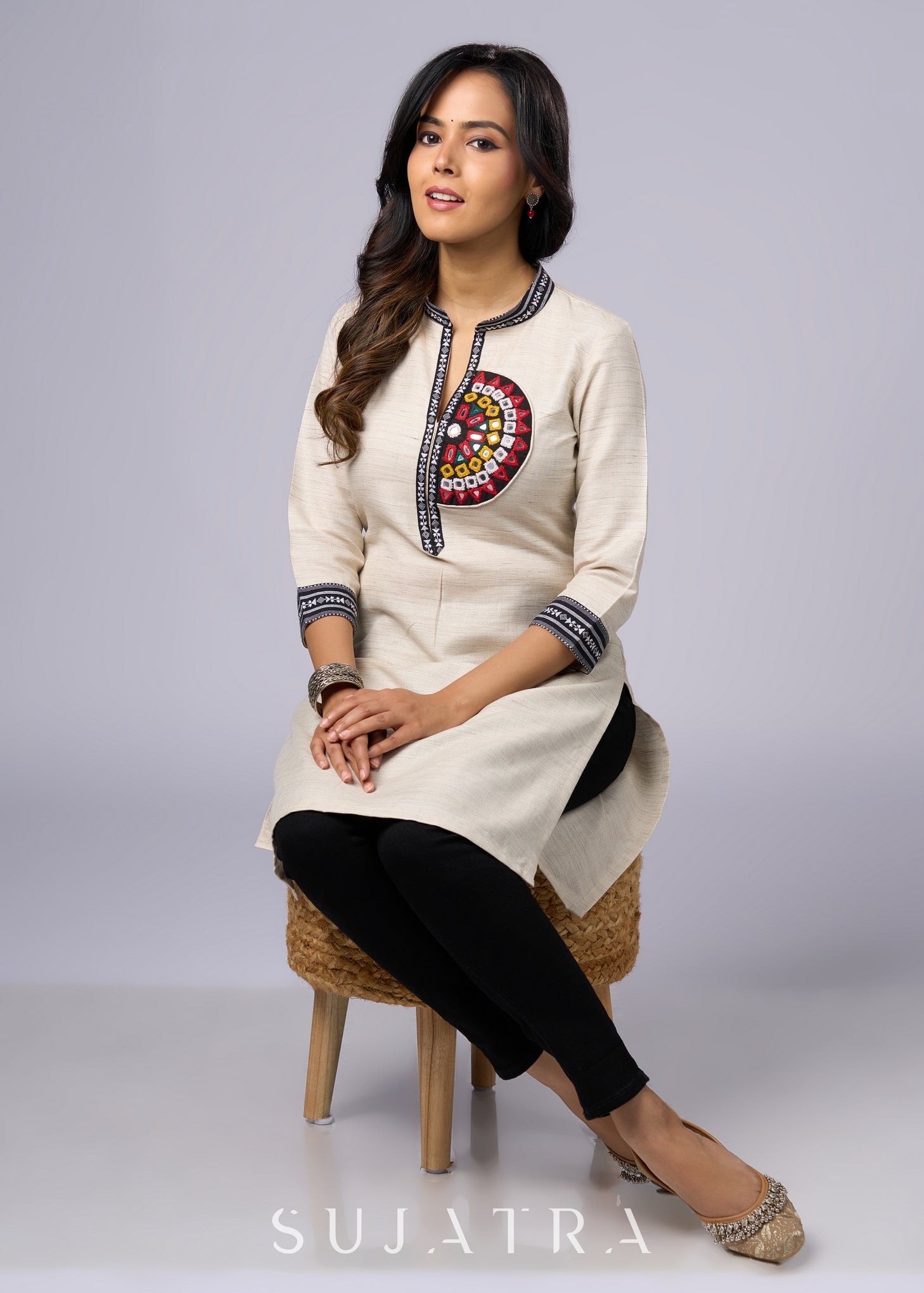 Elegant Off White Cotton Tunic Adorned with Kutch Mirror Work