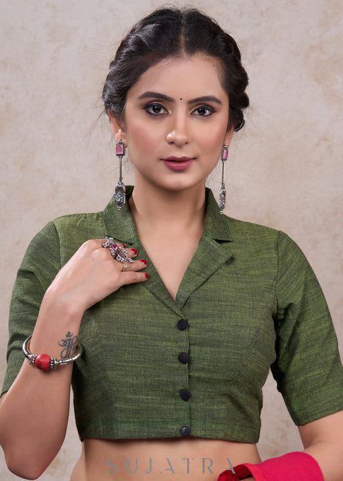 Elegant Bottle Green Cotton Silk Blouse wi...