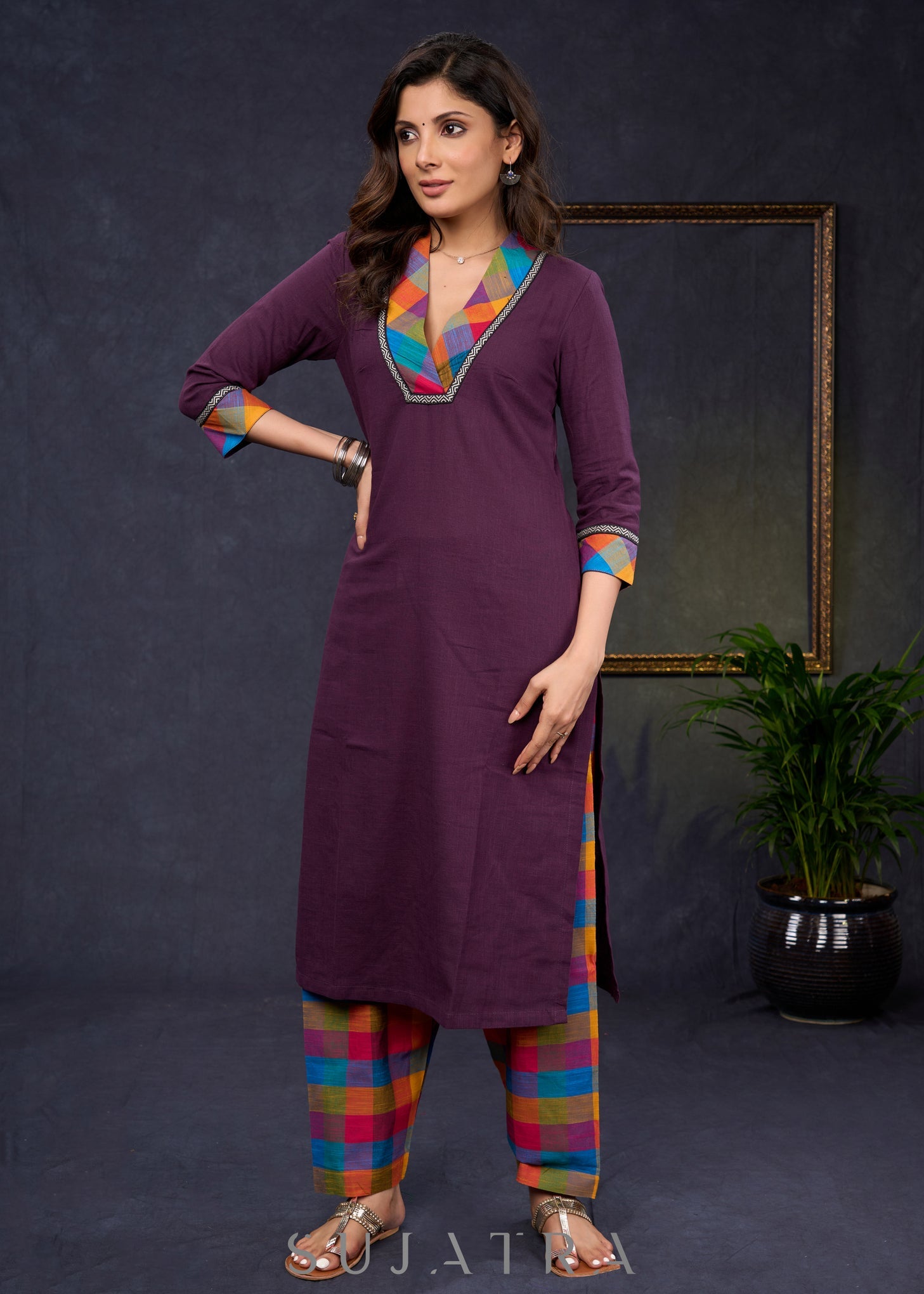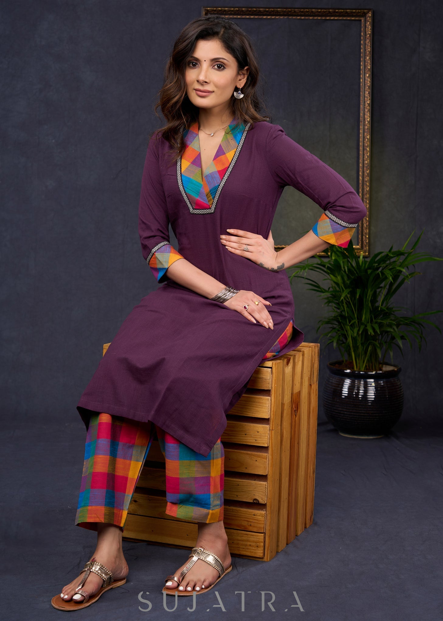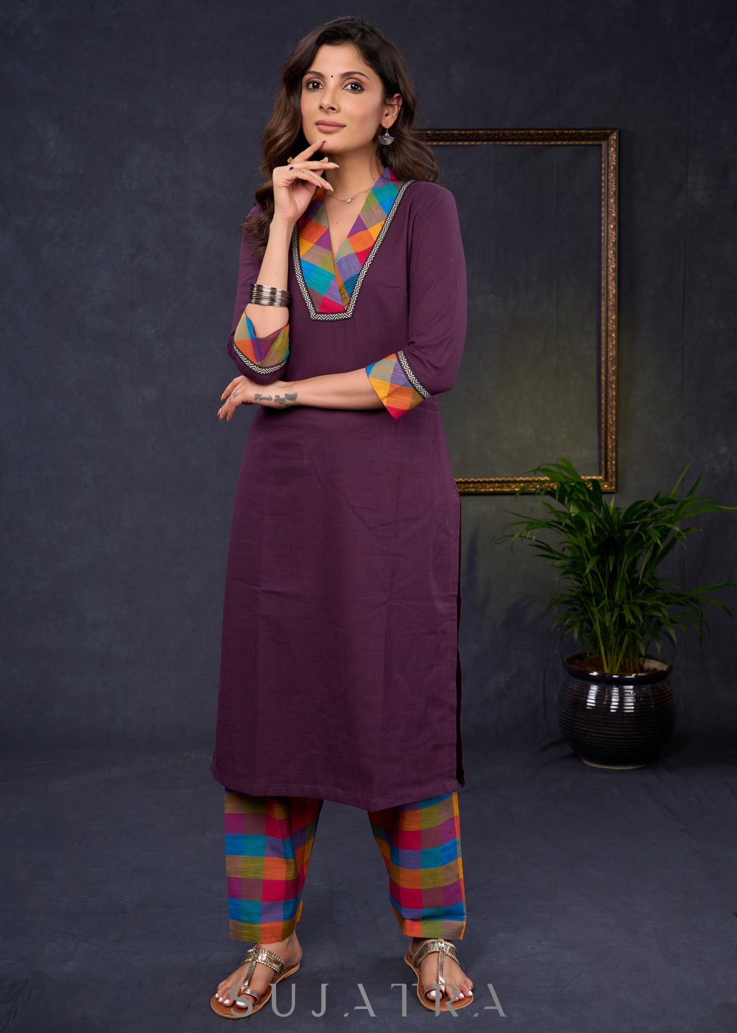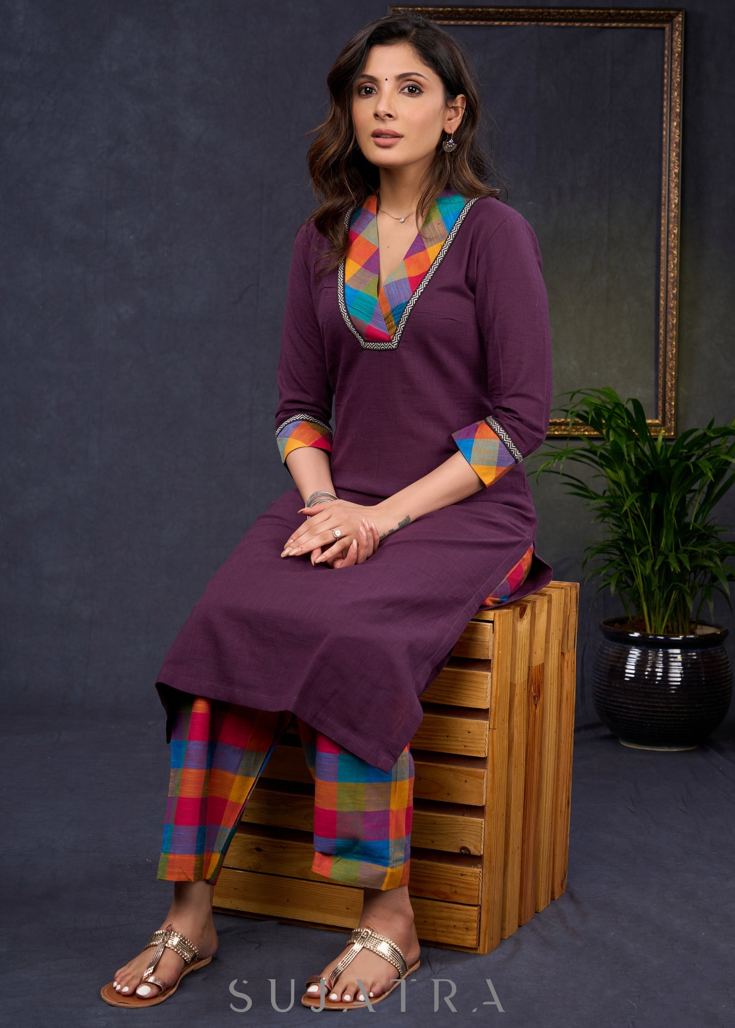 Elegant-Wine-Cotton-Straight-Cut-Kurta-Highlighted-With-Multicolour-Print-Design--Pant-Optional