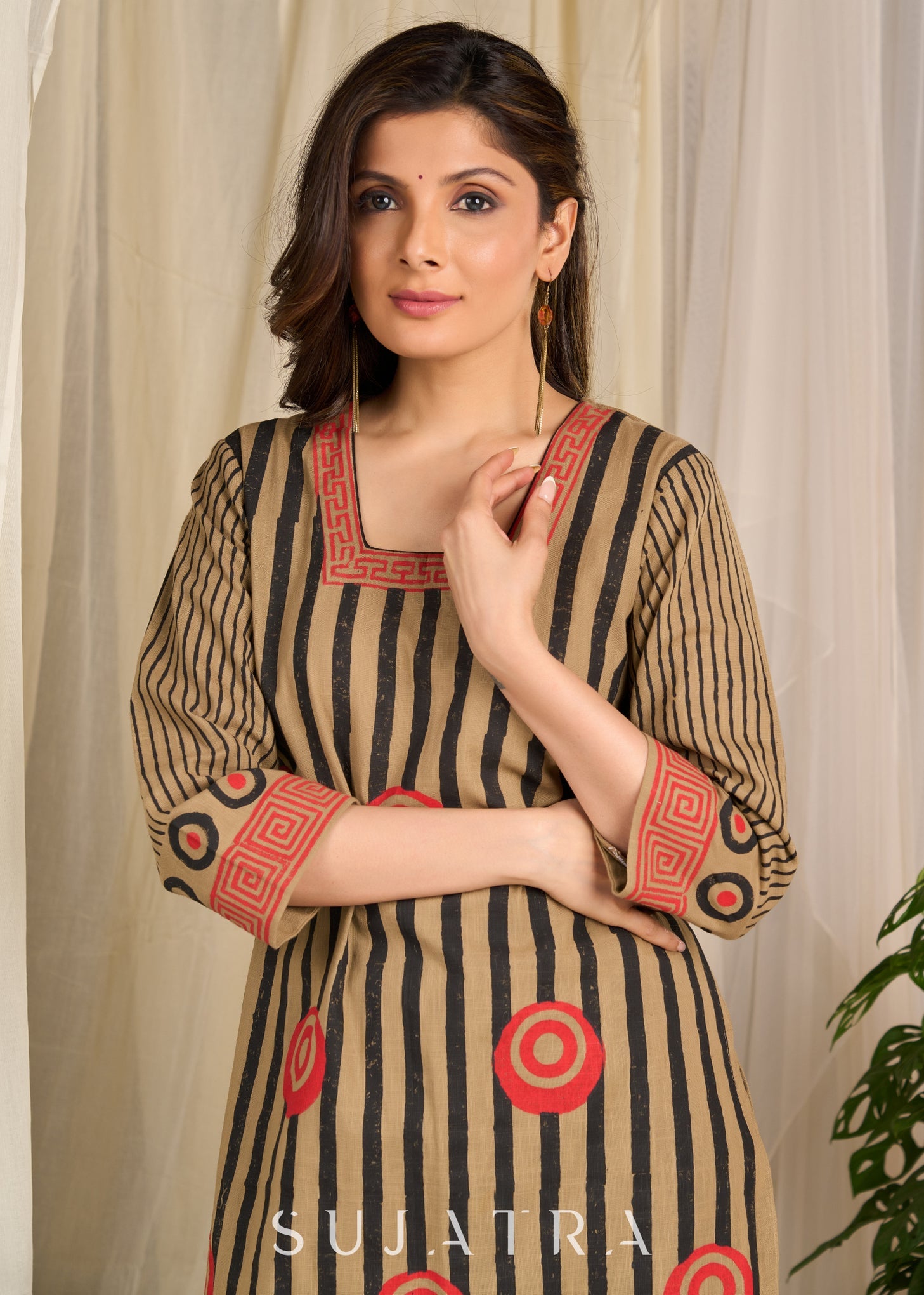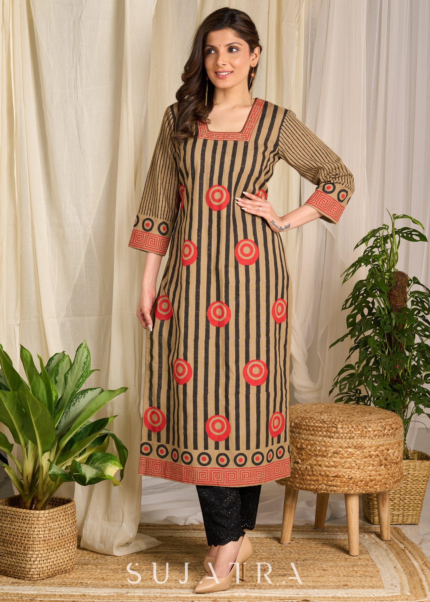 Elevate elegance with bold stripes and vibrant circular block printed Cotton Kurta!