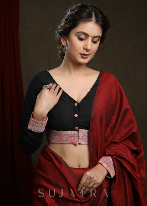 Elevate your wardrobe with this exclusive black cotton ajrakh saree, featuring intricate block printing that showcases timeless craftsmanship. The breathable cotton fabric ensures comfort, while the sophisticated design adds an elegant touch to any occasion. Perfect for those who appreciate artisanal detail and classic style.