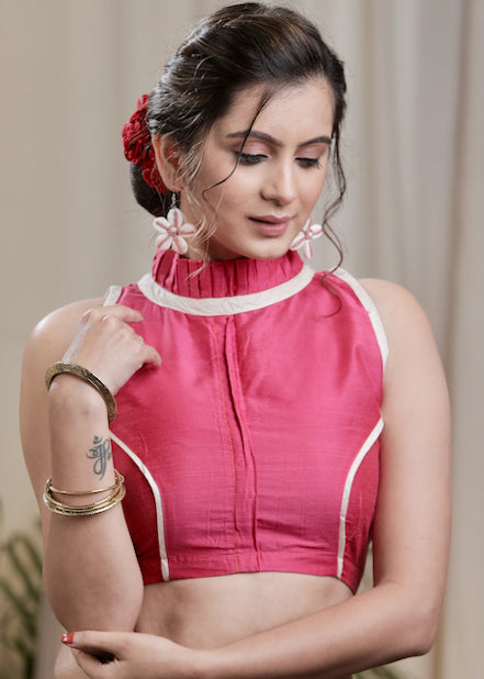 Pink Cotton Silk Back Open Designer Blouse...