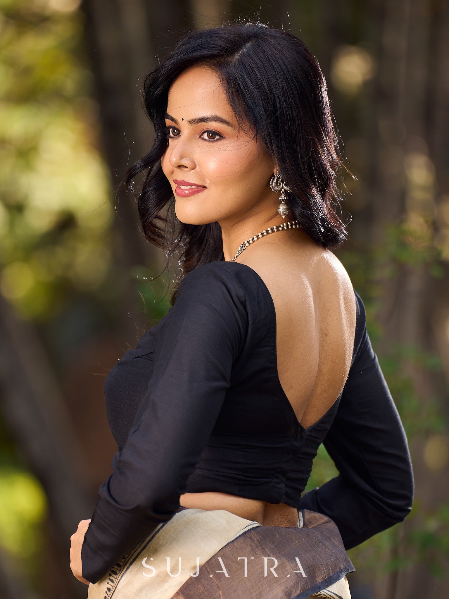 Graceful Black Cotton Silk Full Sleeves Blouse