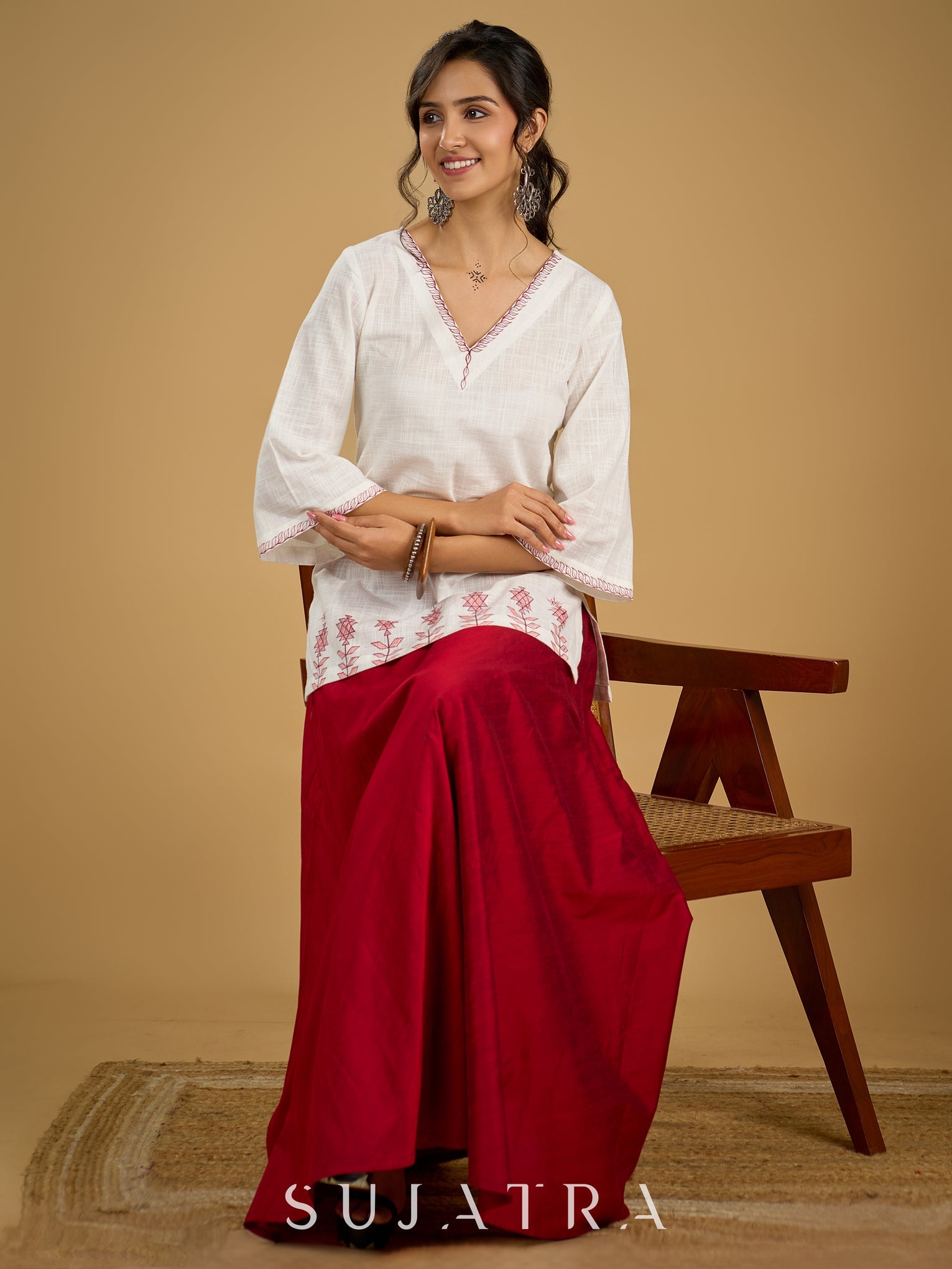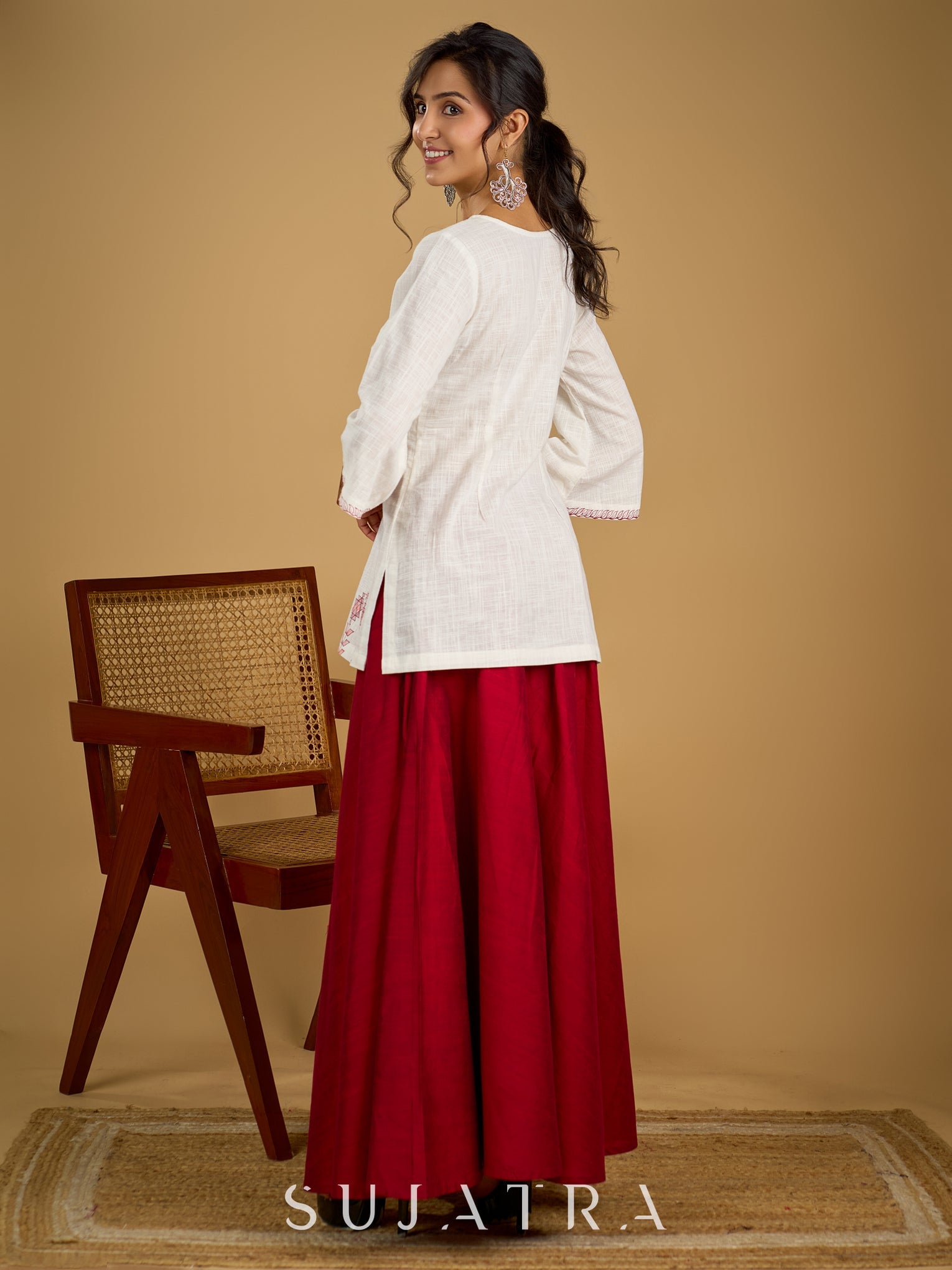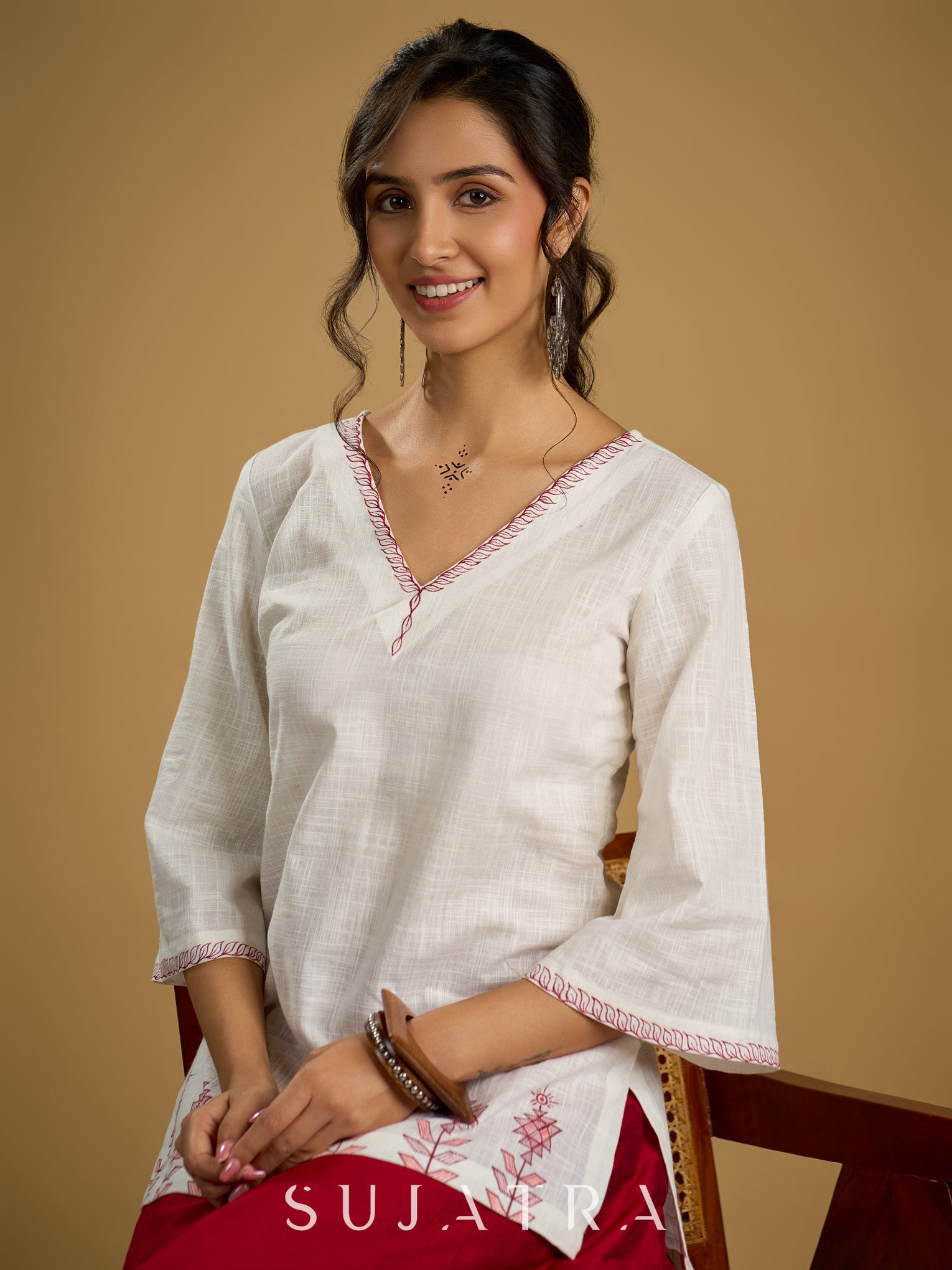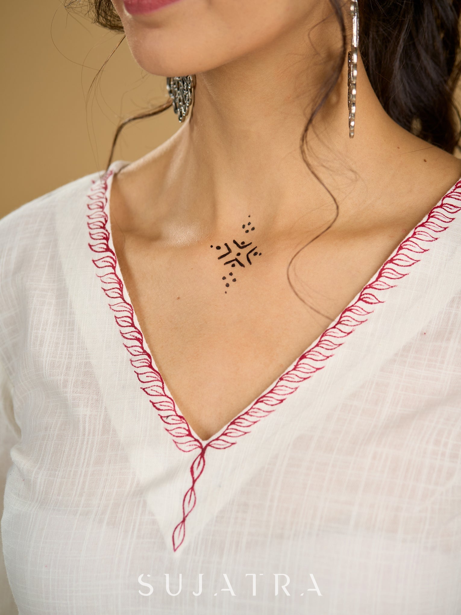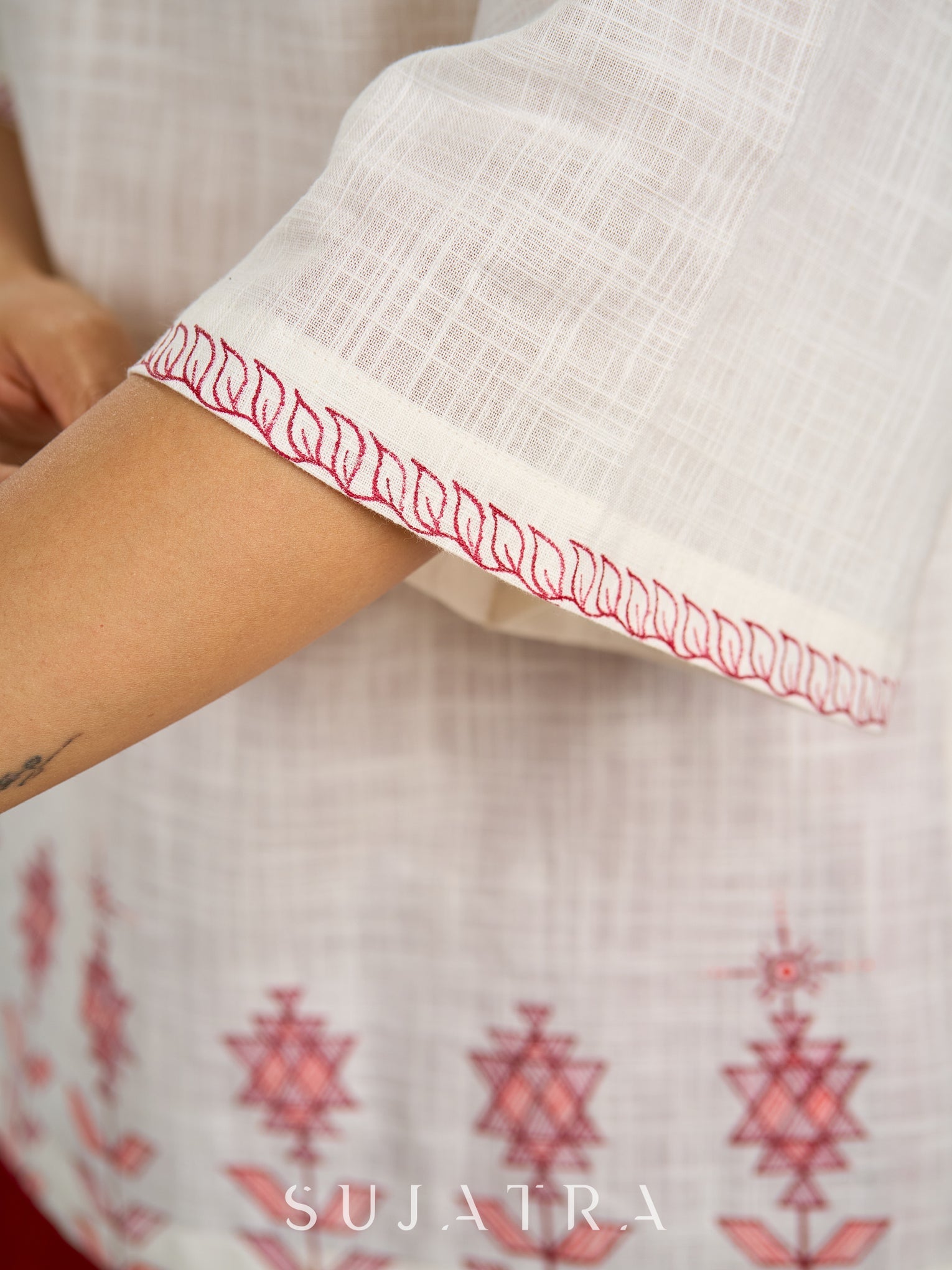 Graceful hand painted white cotton top - Skirt optional