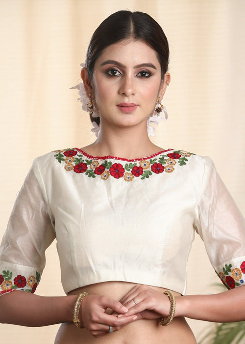 The Ivory Bloom Hakoba Floral Hand Embroidered Cotton Blouse combines delicate craftsmanship with breathable comfort. Made from high-quality cotton, this blouse features intricate hand embroidery that highlights floral motifs, offering a refined and elegant look. Its lightweight fabric ensures all-day comfort, making it an ideal choice for both casual and semi-formal occasions. Perfect for those who appreciate artisanal detail and natural materials in their wardrobe.