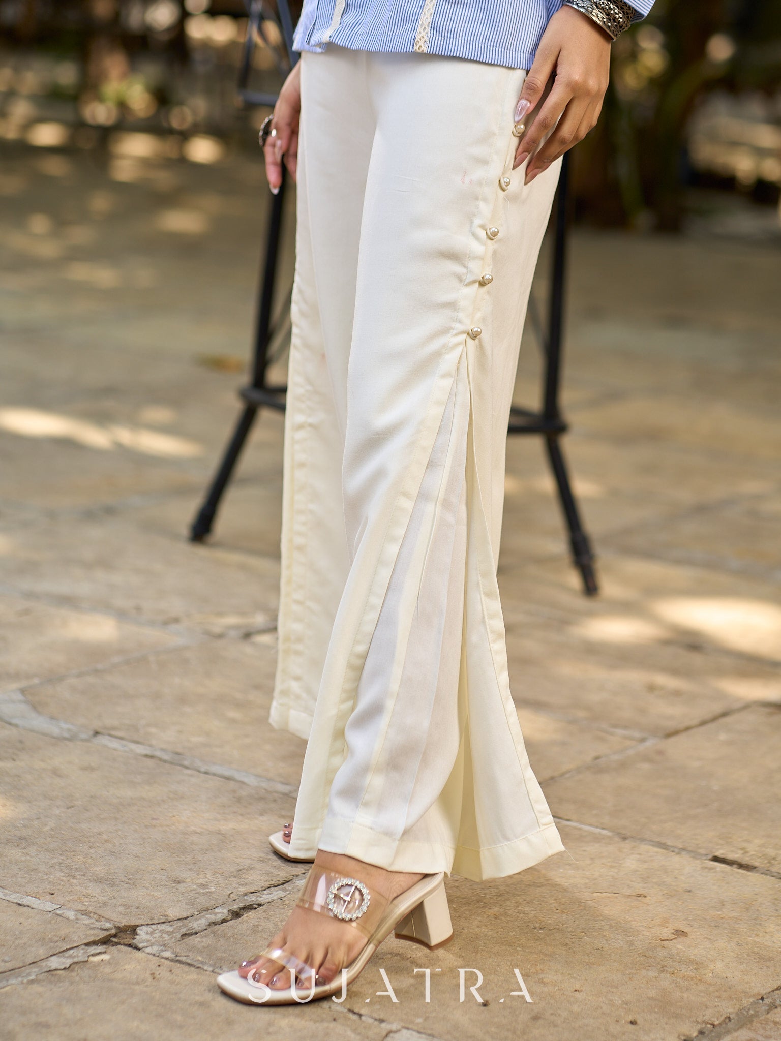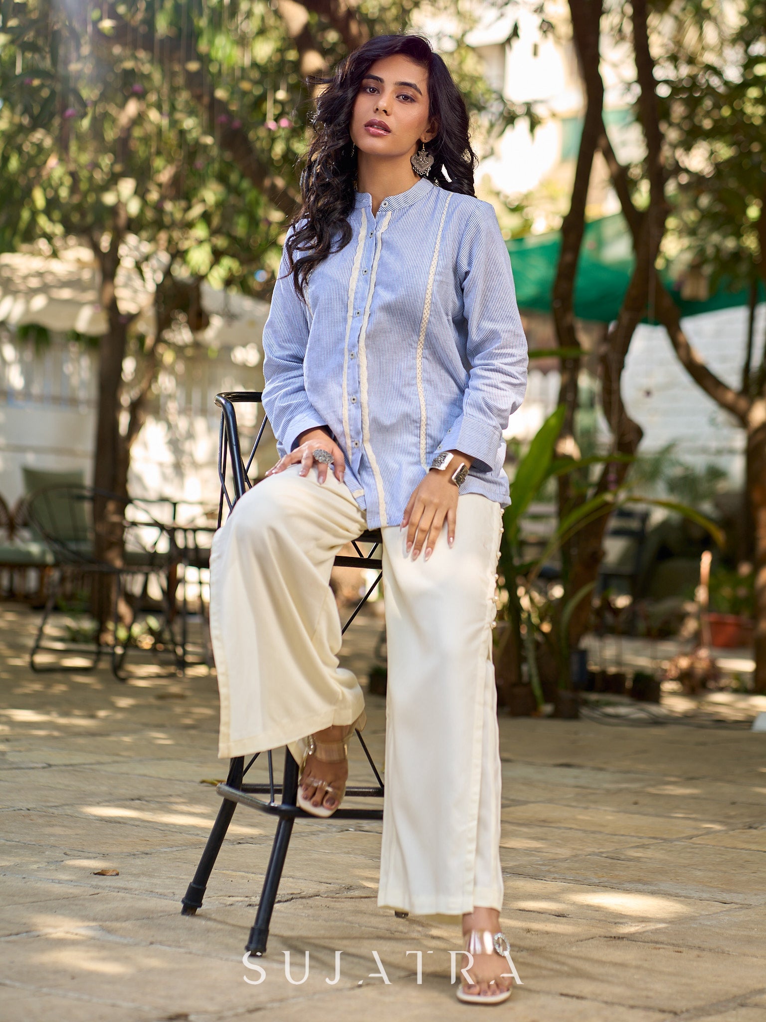 Light Blue Cotton Striped Shirt with Soft Lace Touches