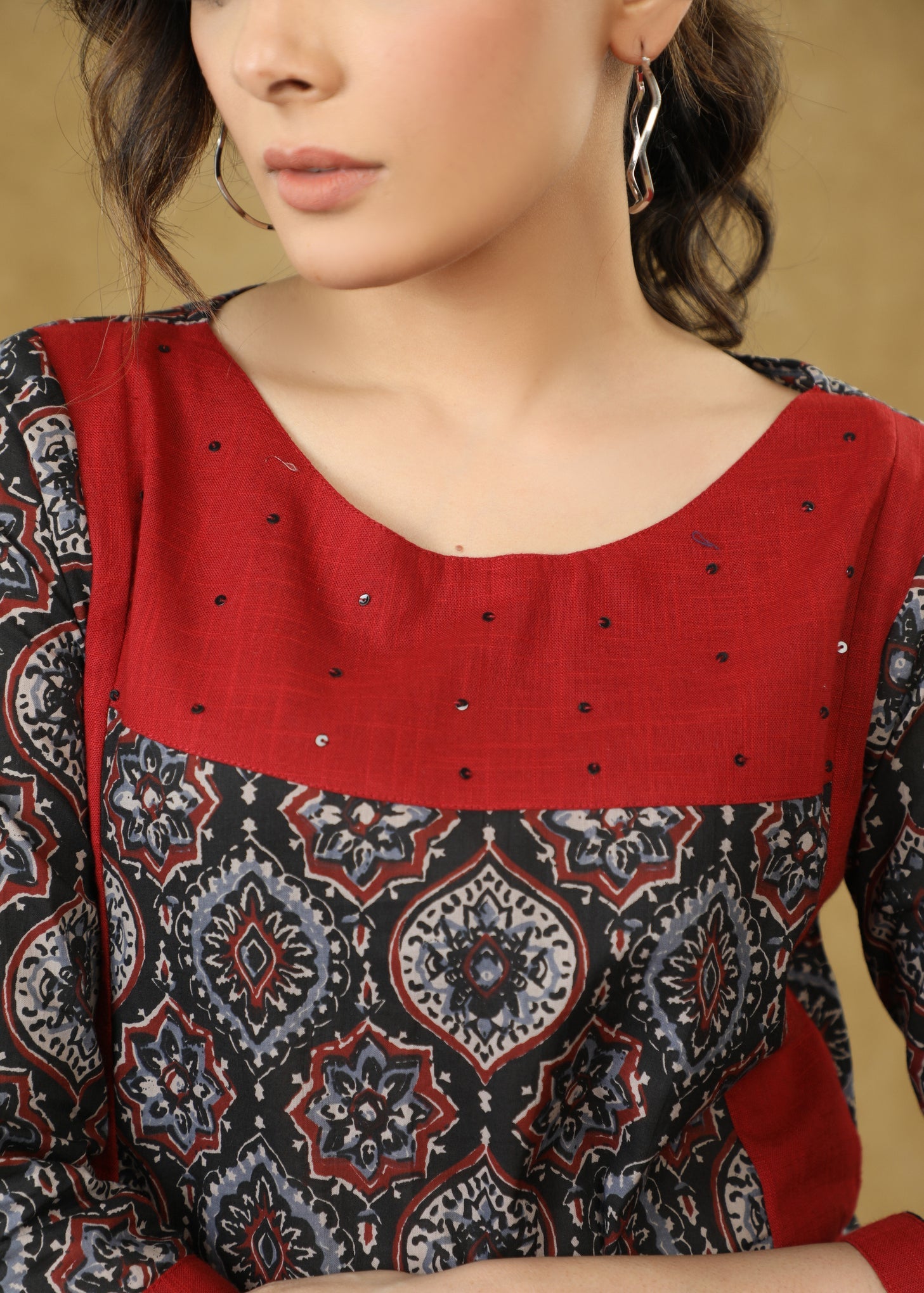 Stylish Maroon Ajrakh Combination Cotton Top