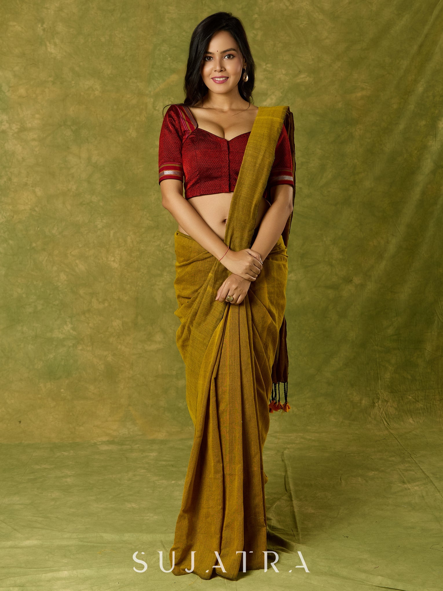 Stylish maroon khun blouse blending heritage with contemporary charm.