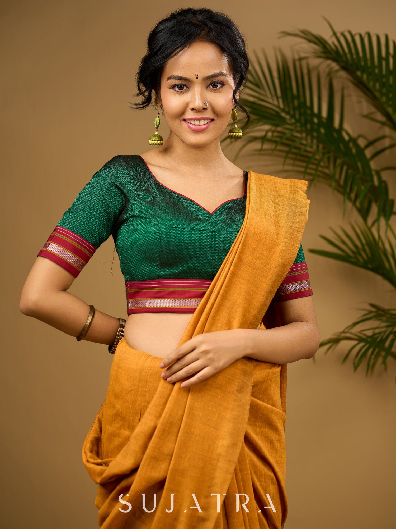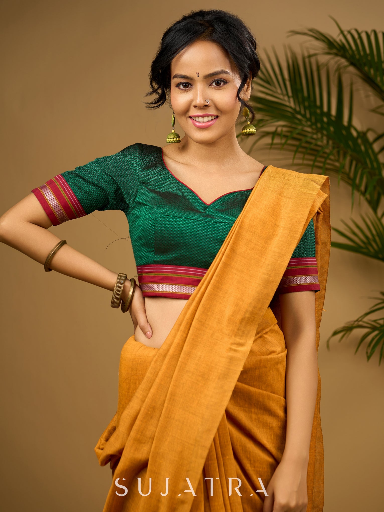 This traditional green khun blouse combines timeless elegance with enduring style. Crafted from high-quality khun fabric, it offers a rich texture and vibrant color that complements a variety of ethnic outfits. Its classic design ensures versatility for festive occasions and everyday wear, making it a lasting addition to your wardrobe.