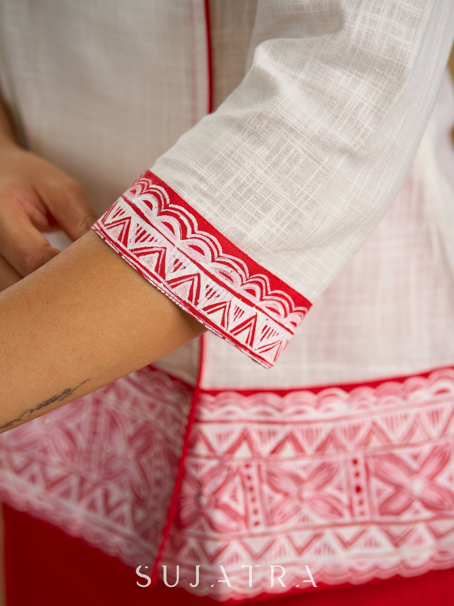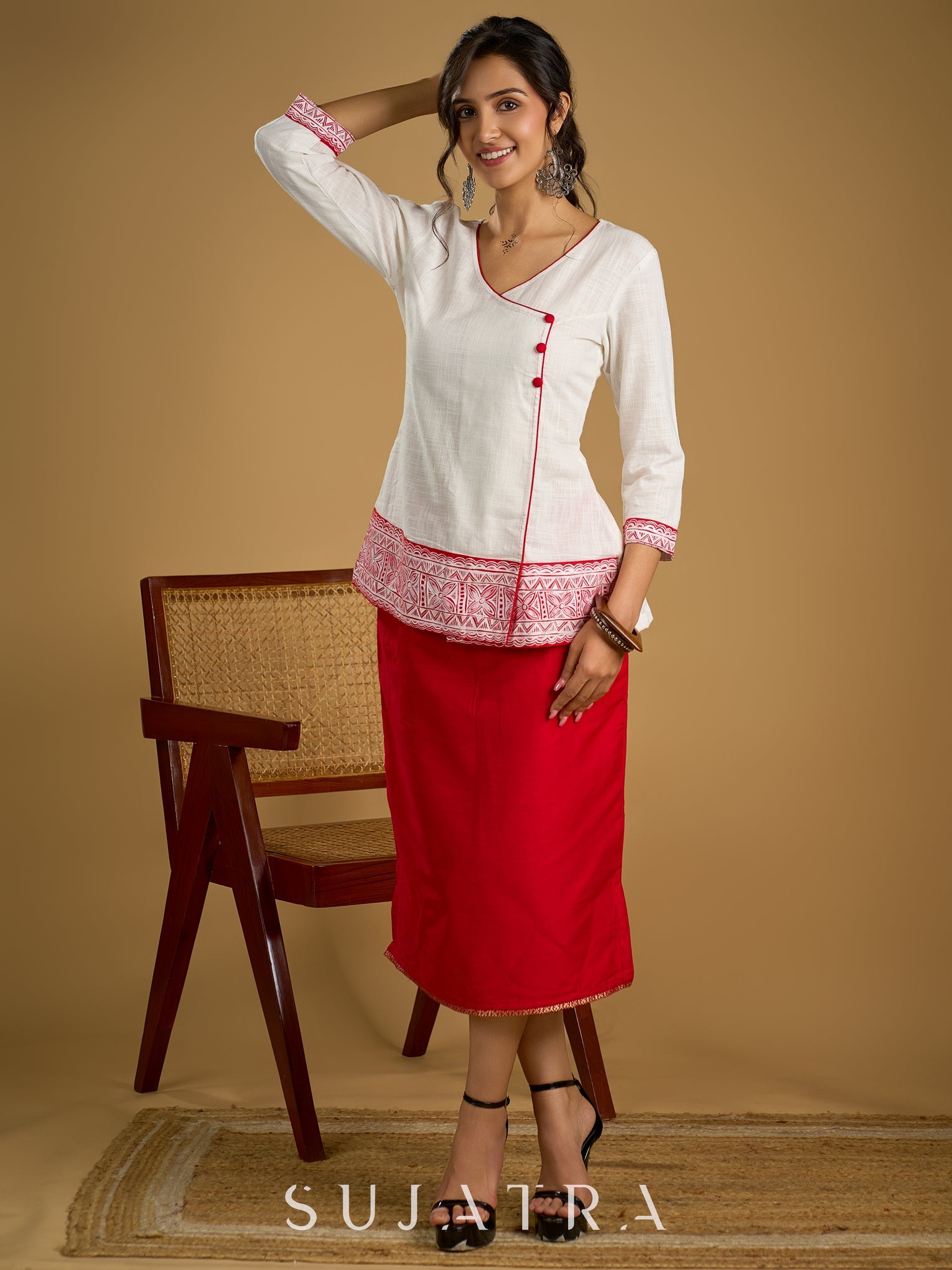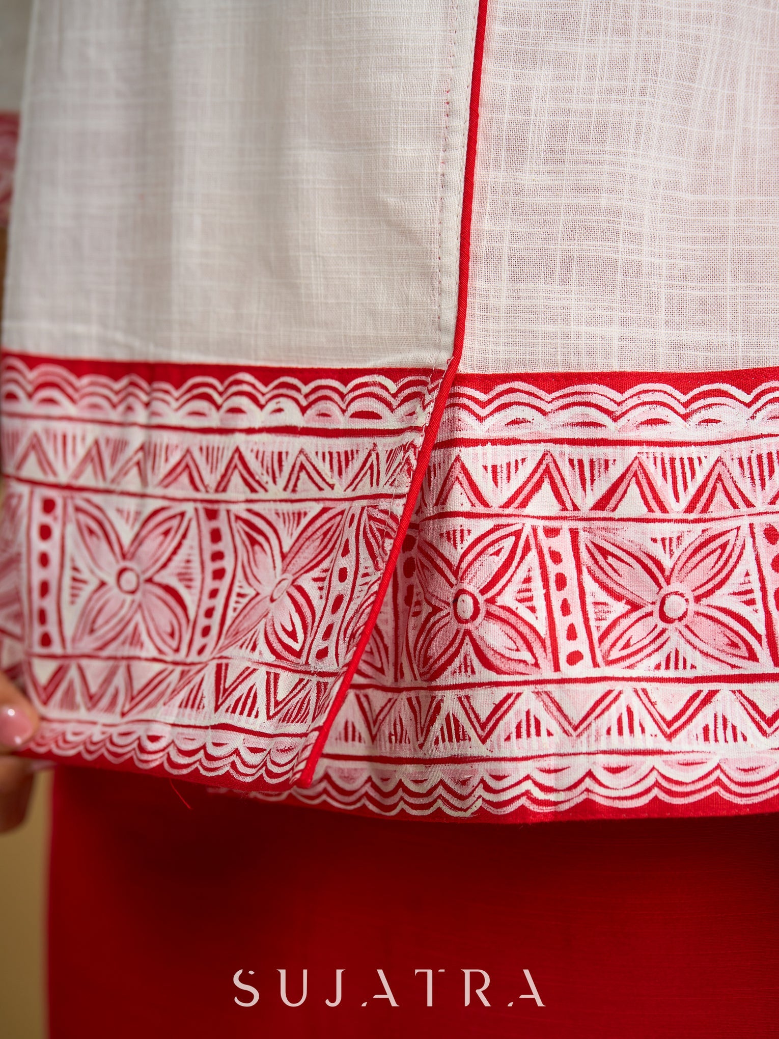 Traditional madhubani hand painting crafted on comfortable white cotton top- Skirt optional