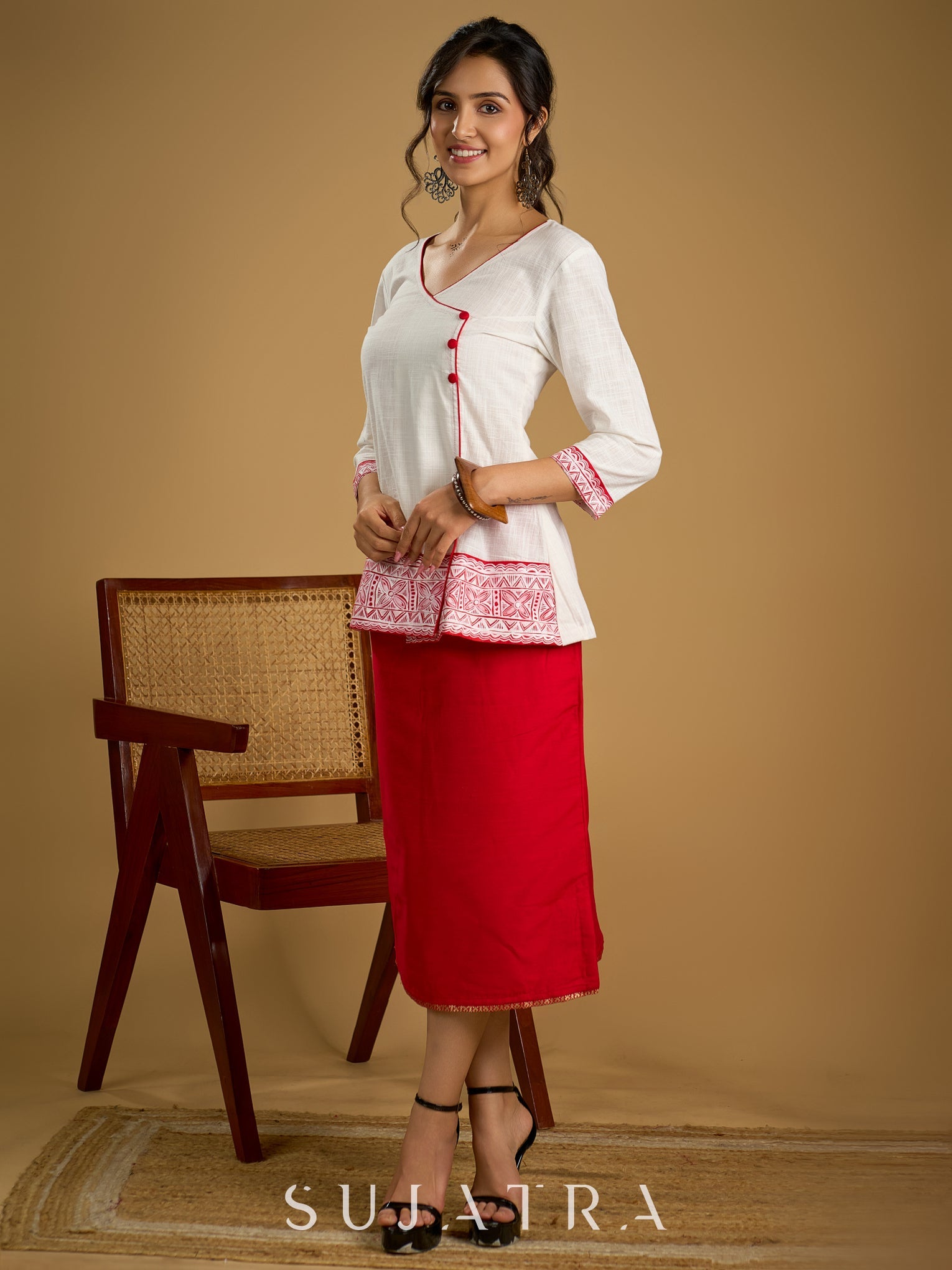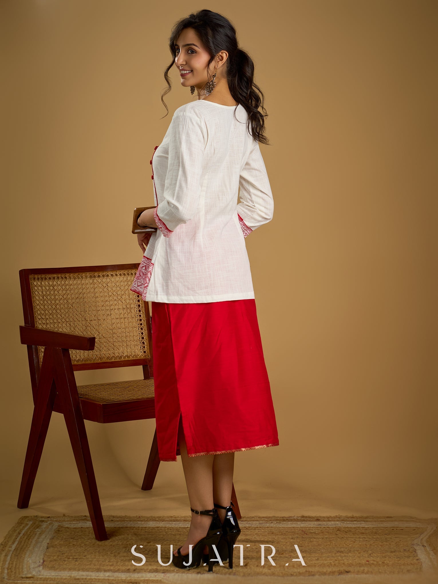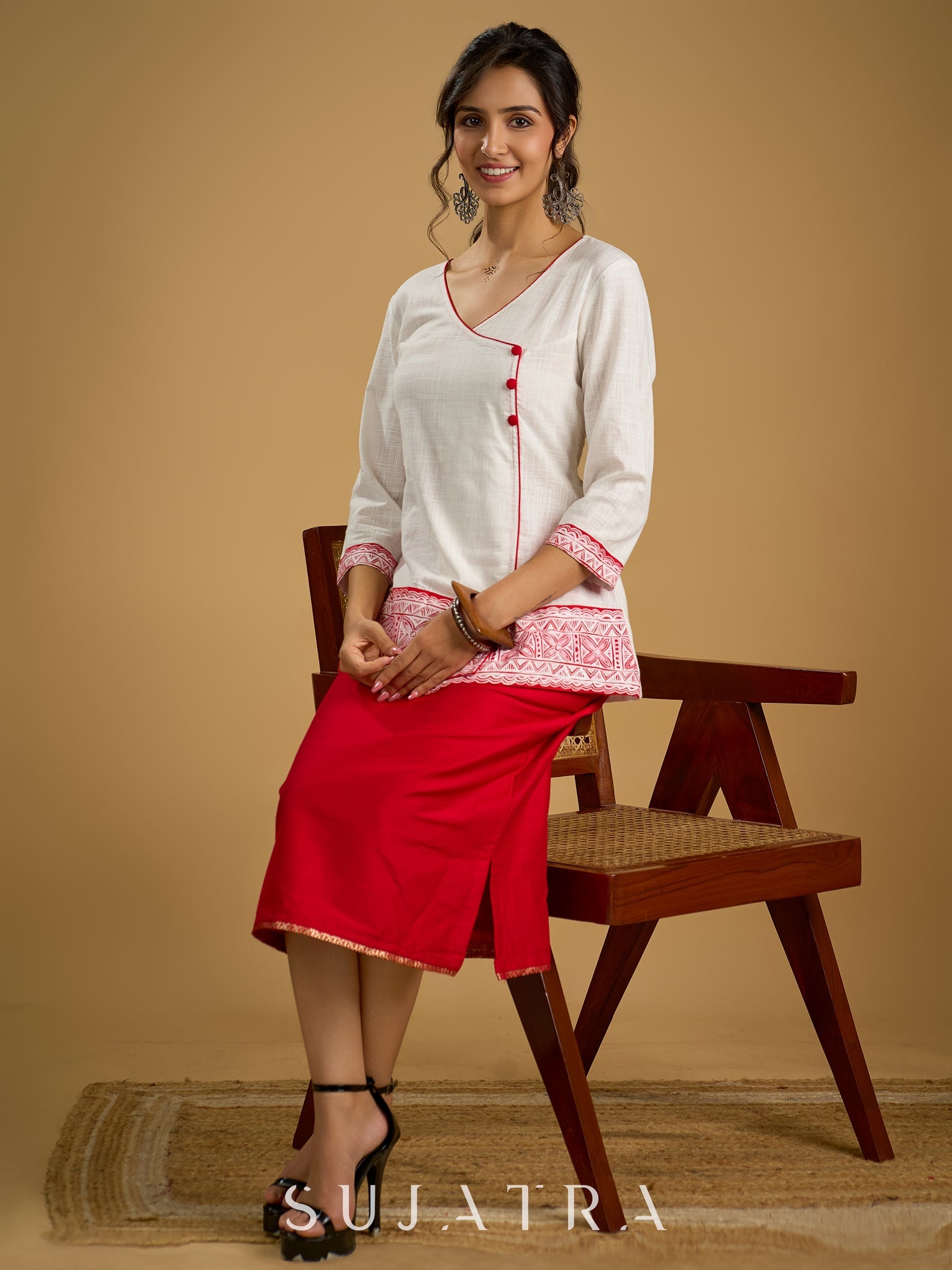 Traditional madhubani hand painting crafted on comfortable white cotton top- Skirt optional