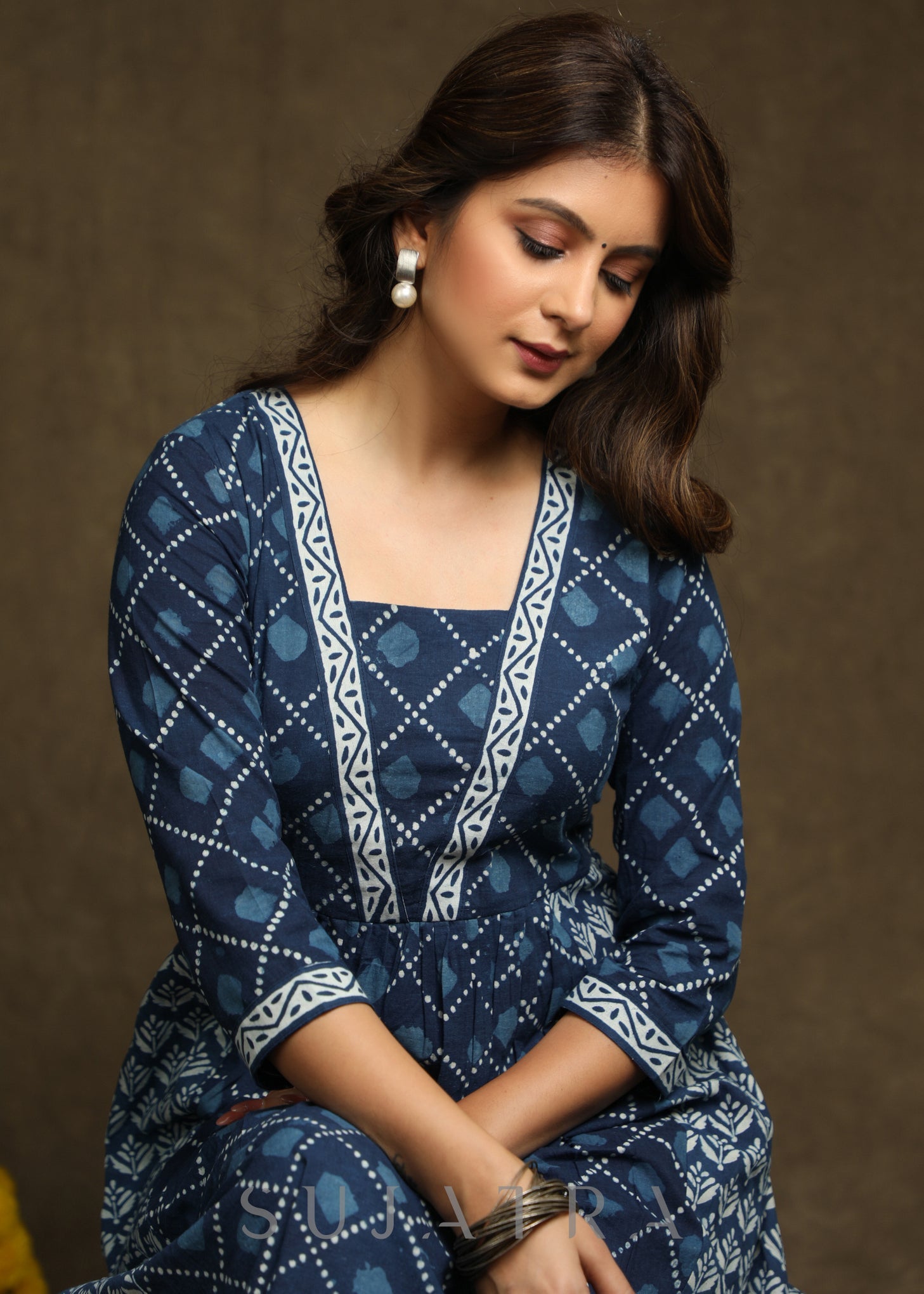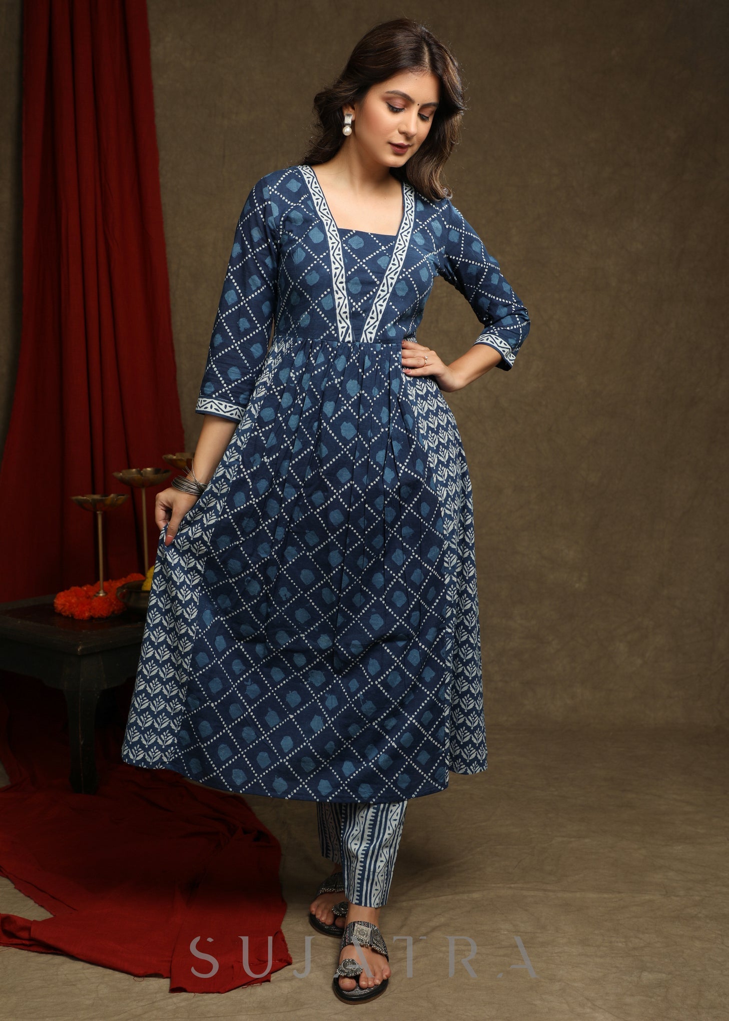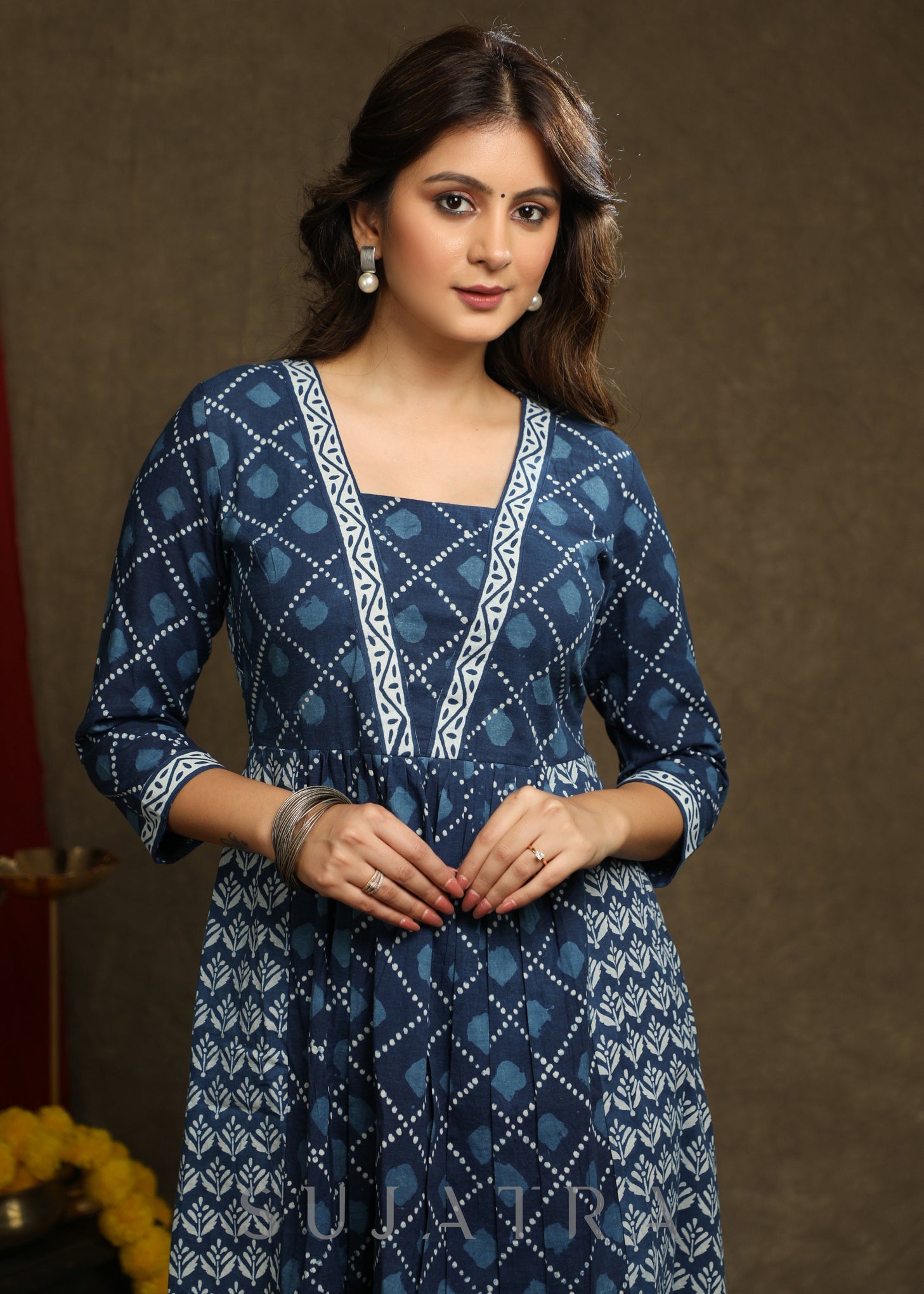 Trendy Indigo Combination A-Line Kurta - Pant Optional